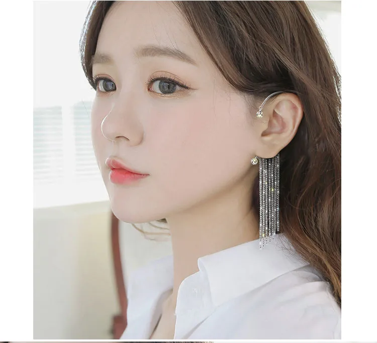 Crafted with high-quality materials and designed to catch the light in all the right ways, this accessory offers the perfect balance of elegance and playfulness. Whether you're dressing for a night out, a party, or simply looking to add a touch of glam to your everyday style, the Long Chain Tassel Ear Hook Ear Clip is the perfect addition to your jewelry collection.
