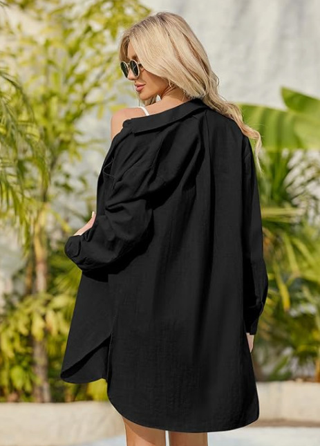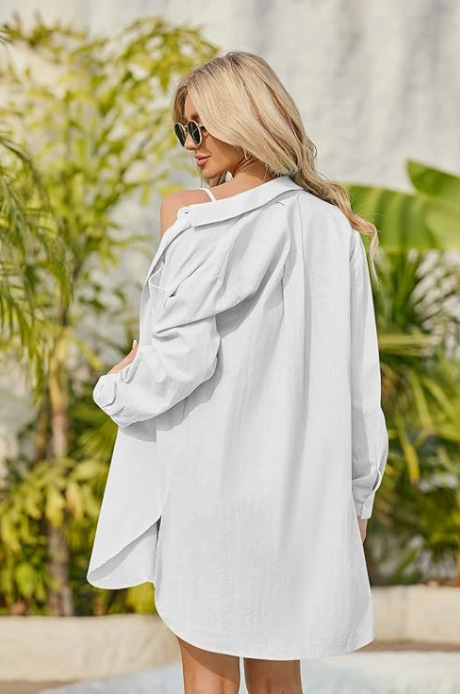 Long Shirt Loose Beach Bikini Cover Up Women Casual Beachwear