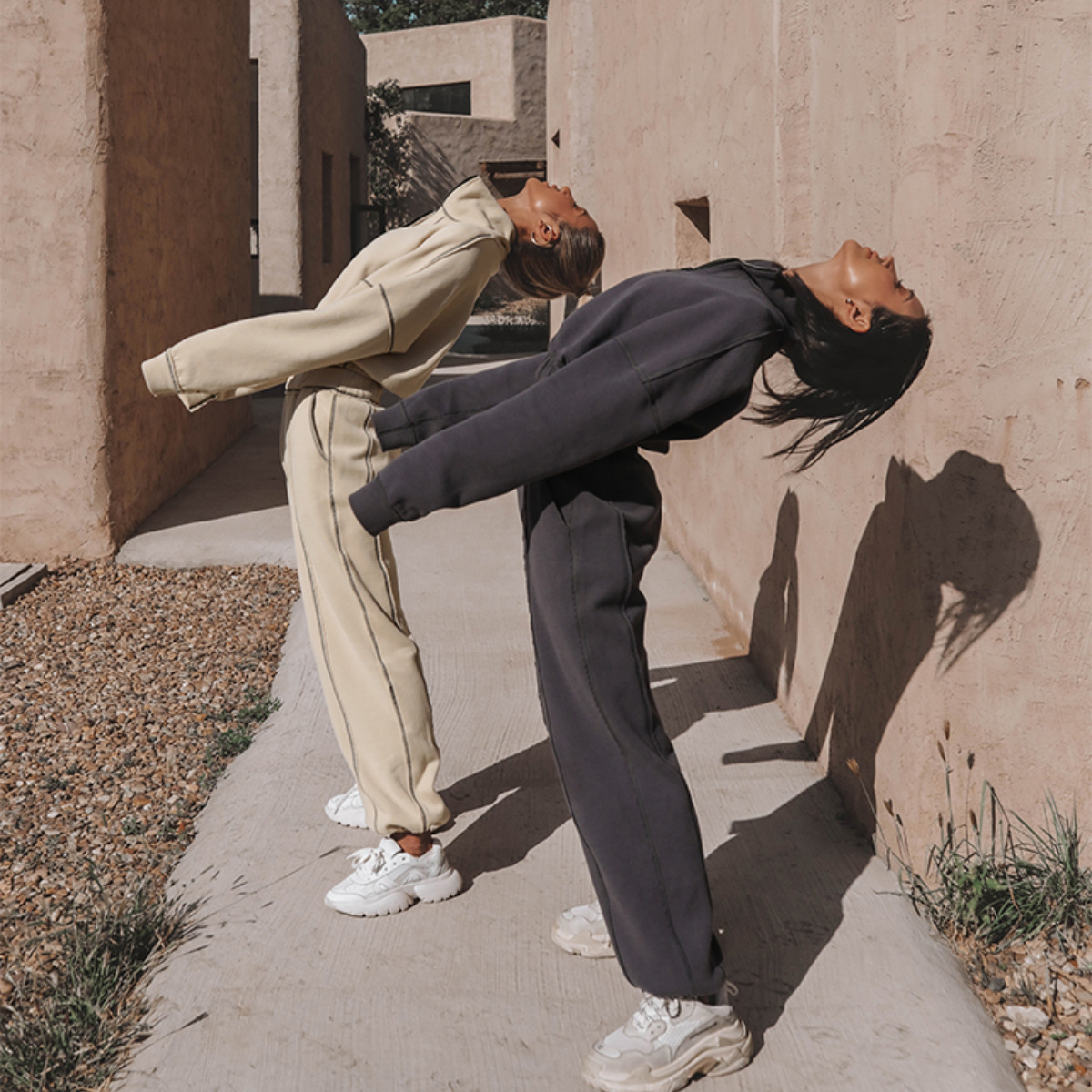 This set is perfect for layering during cooler months or wearing as a standalone outfit. The neutral color options make it easy to mix and match with other wardrobe staples. Pair it with your favorite sneakers for a laid-back look, or dress it up with boots and accessories for a more polished appearance.