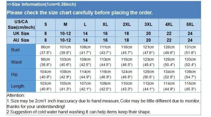 2. Please check the size chart carefully before you buy the item, if you don't know how to choose size, please contact our customer service.