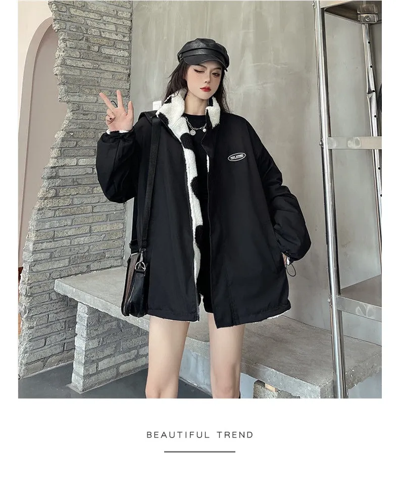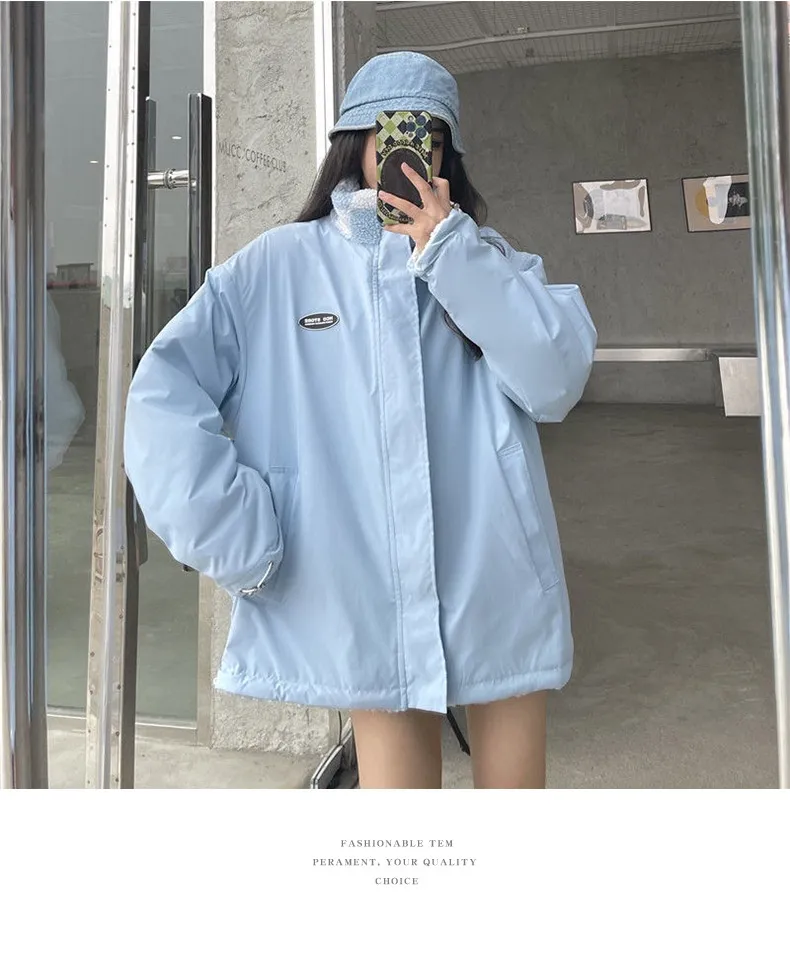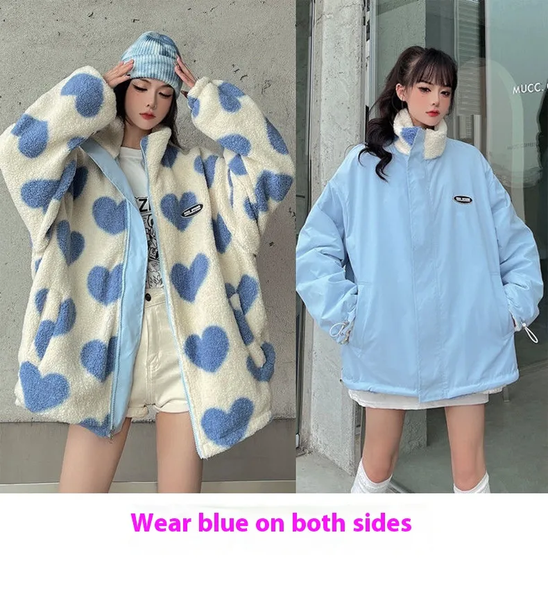 Love Lamb Fleece-Lined Warm Reversible Cotton-Padded Coat