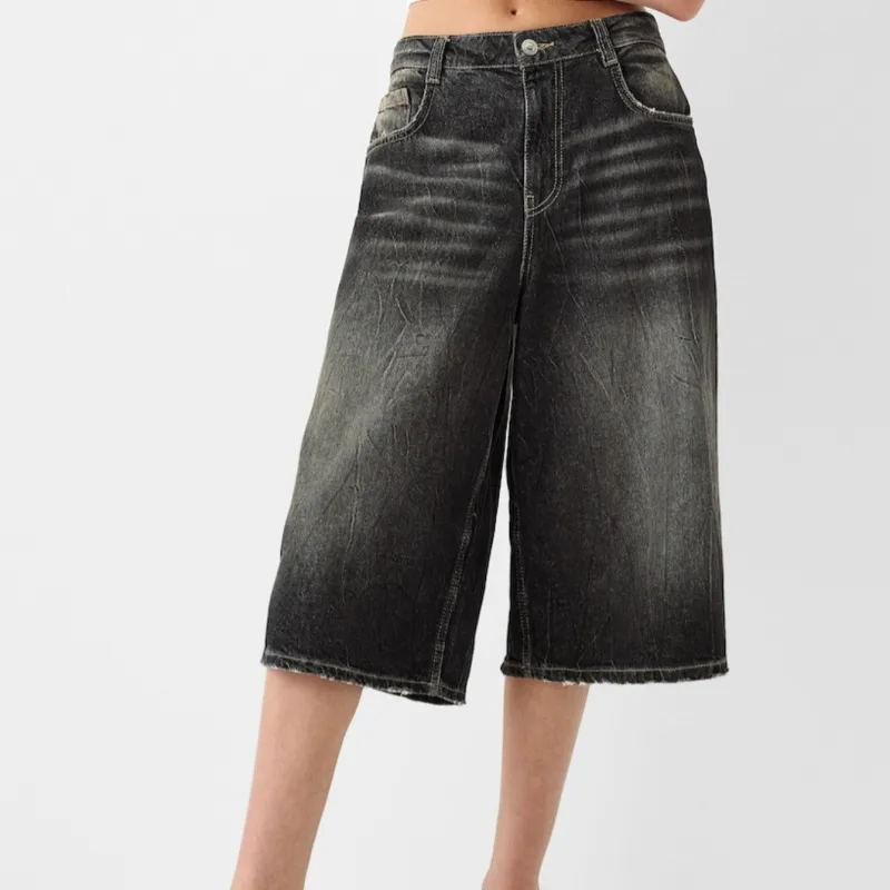 The durable denim fabric ensures that these pants are built to last while maintaining their shape and comfort. Their versatile design makes them suitable for various occasions, from casual outings to laid-back evenings. The low waist and cropped design add a modern touch, while the relaxed fit ensures all-day comfort.