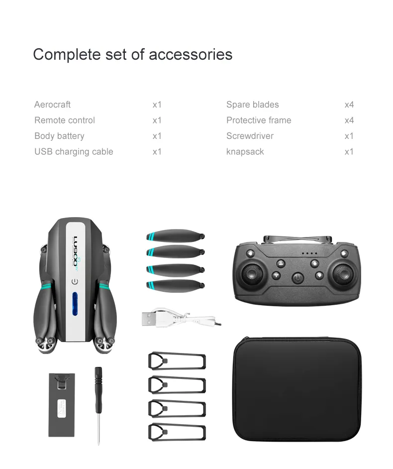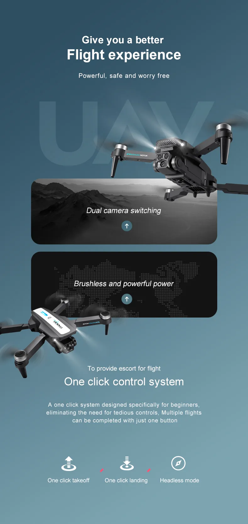 -One-click takeoff / landing. One-button take-off or landing automatically, the drone will take off or return to the take-off position.