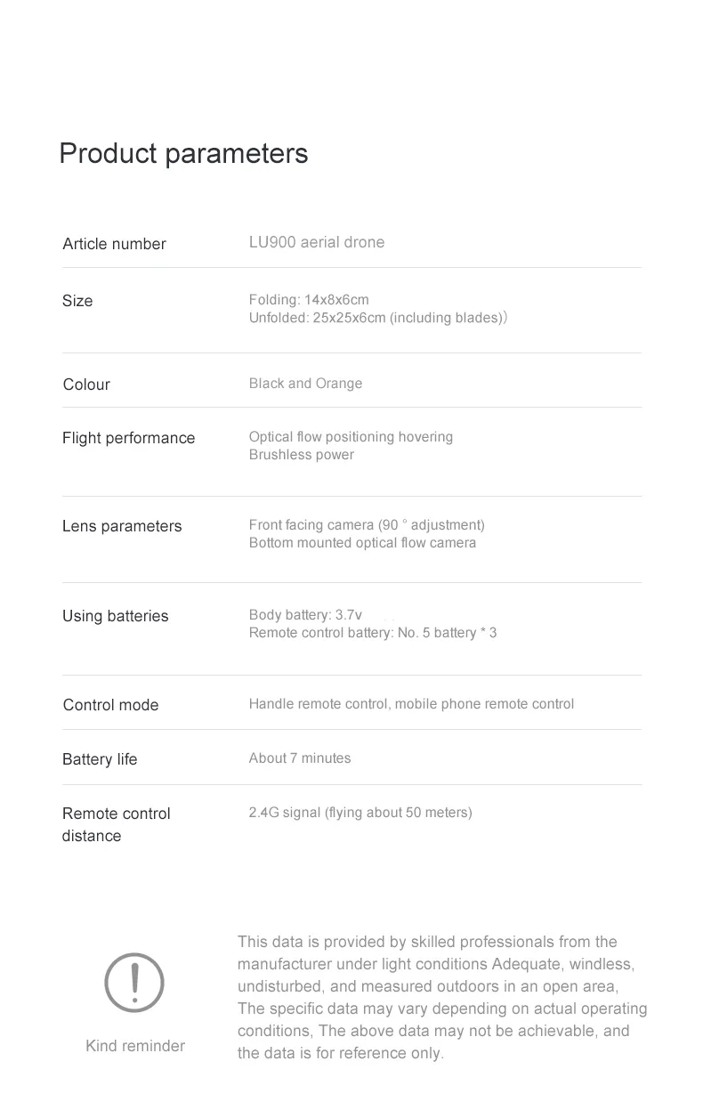Up / Down, Forward / Backward, Left / Right, Lateral Flight, Level 3 Flight Speed, LED Light, Follow Me, Flight Around, Waypoint Flight, Altitude Hold Mode, Headless Mode , One-button return, one-button take-off / landing, WiFi FPV, camera / video