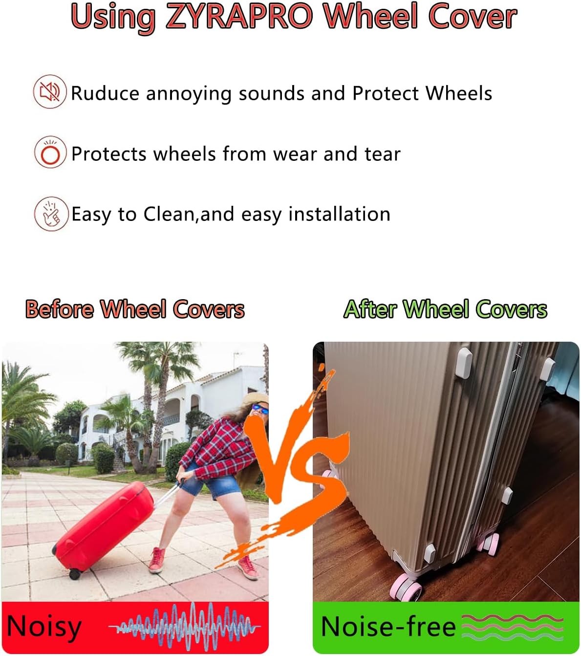 "I love how they reduce wheel noise! No more annoying rattling sounds when rolling my suitcase through the airport."