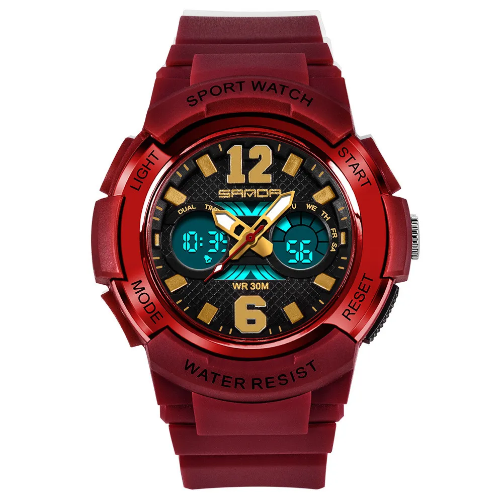 Functions: stopwatch timing, luminous, dual time, date display, waterproof, shockproof and iceproof,