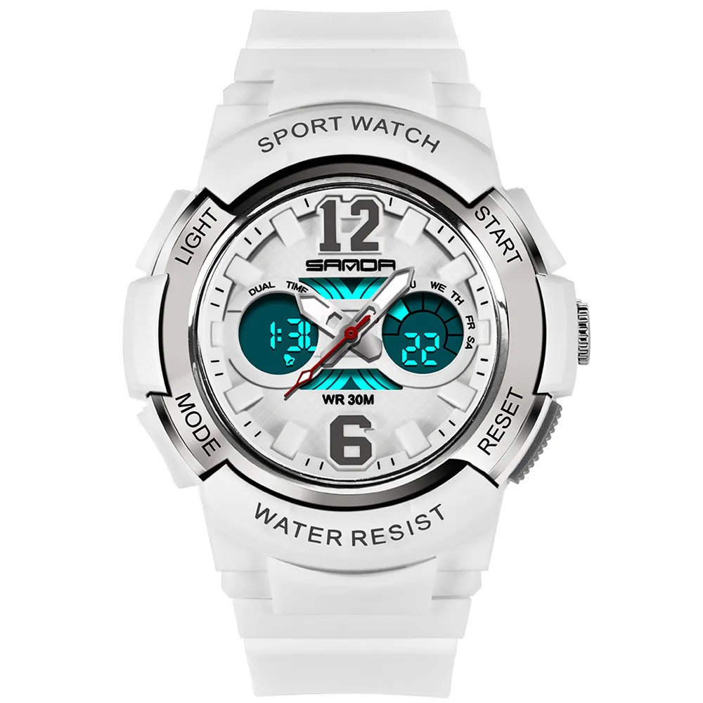 Functions: stopwatch timing, luminous, dual time, date display, waterproof, shockproof and iceproof,
