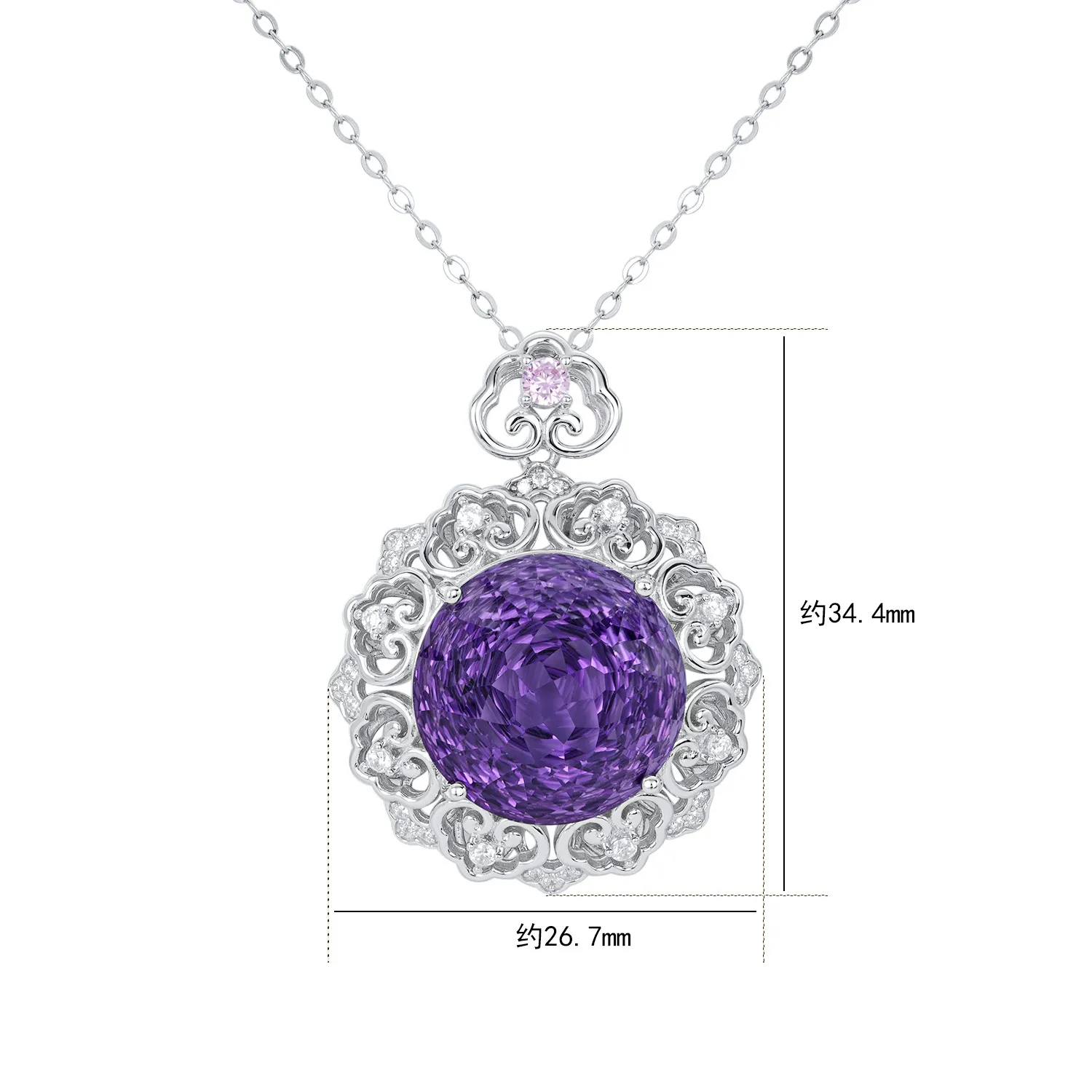 Luxurious S925 Silver Set Natural Amethyst Pendant Female Vintage Pattern Senior Jewelry Quality Sweater Chain