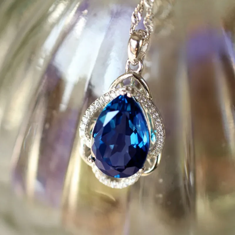 Luxury Simulated Royal Blue Zircon Necklace