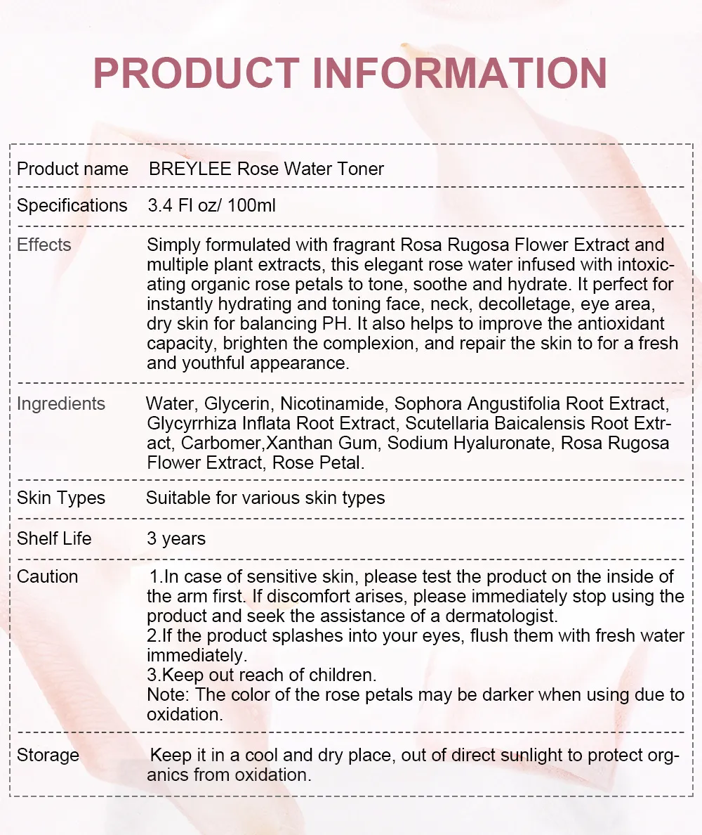 Product specification: breylee rose petal water 100ml (the product is for export only, domestic sales are prohibited, and the purchase is