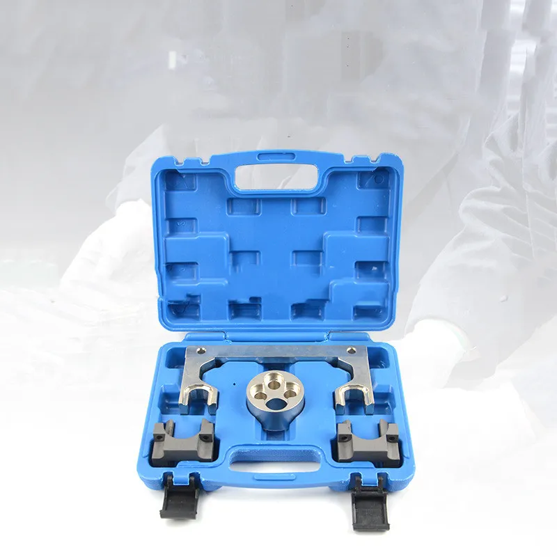 The kit includes tools for locking and positioning engine components accurately: