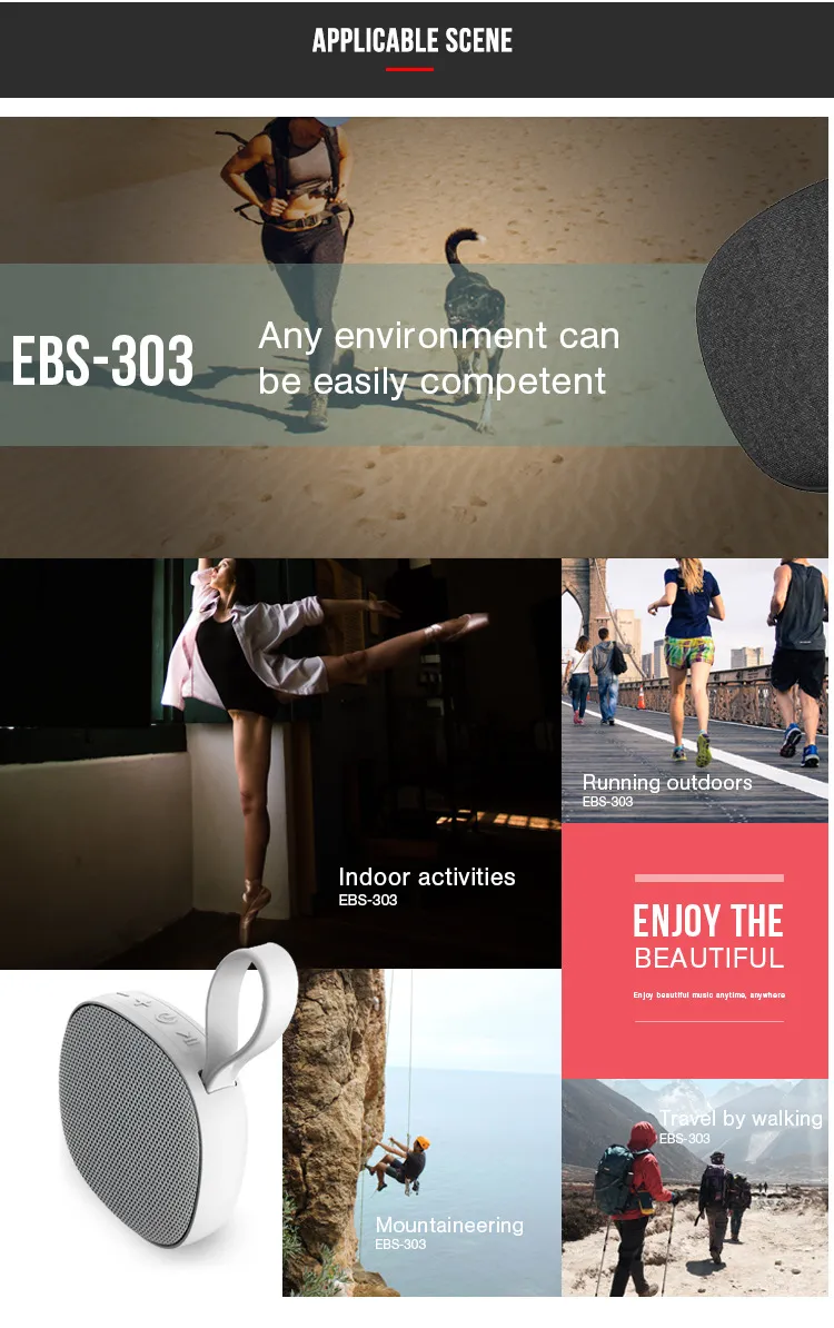 With hanging, mini and lightweight; waterproof IPX6 is convenient to carry out;
