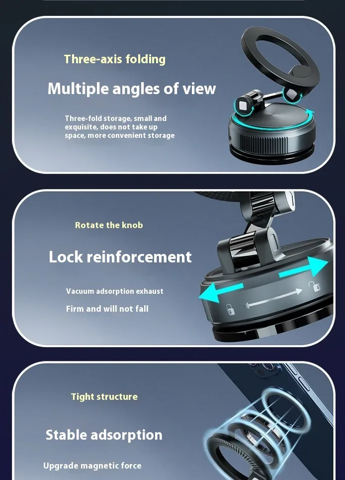 Magnetic Car Navigation Phone Holder – Vacuum Sucker Mount