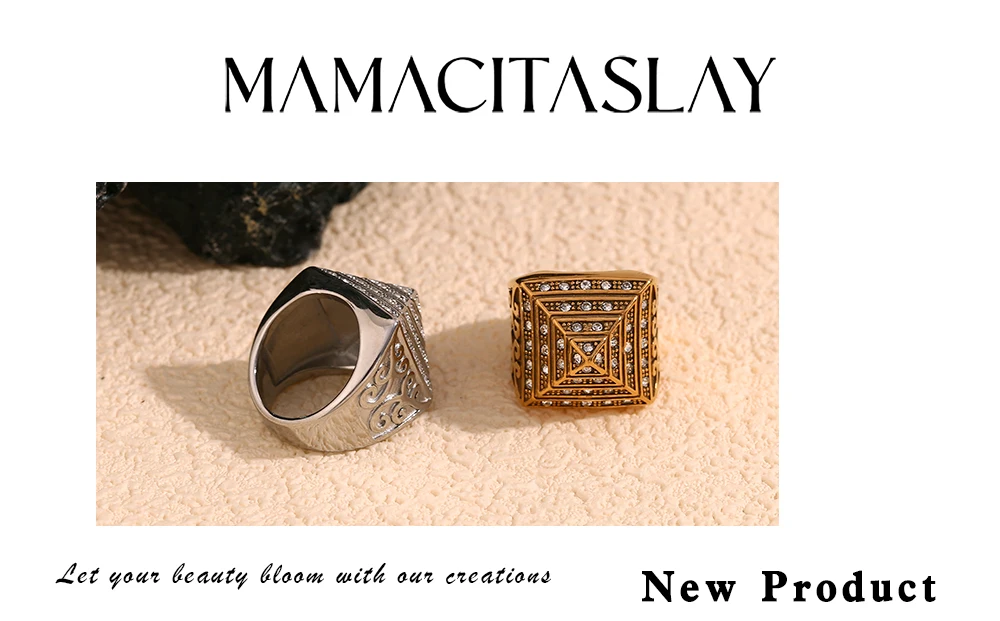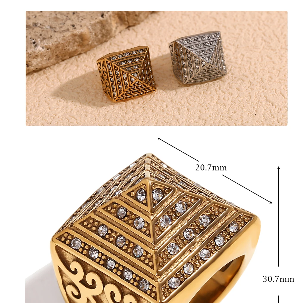 The MamacitaSlay New In Vintage Four Story Pyramid Vine Waterproof Men’s Ring offers a distinctive blend of vintage elegance, architectural inspiration, and practical durability. Crafted from high-quality stainless steel, this waterproof ring is designed to withstand the rigors of daily life while making a bold fashion statement.
