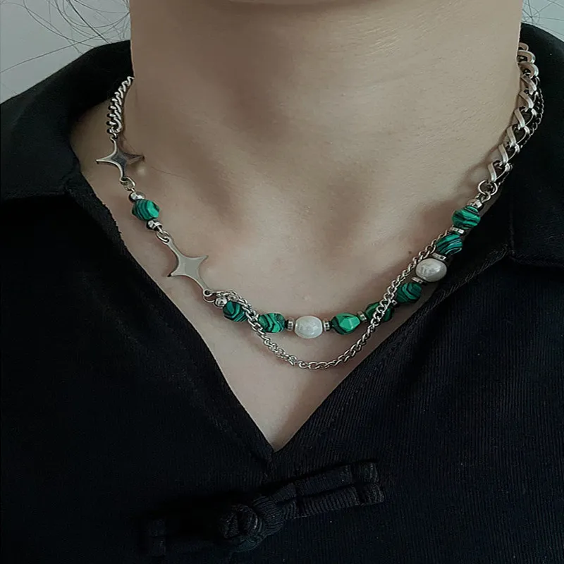 The spliced design of this necklace sets it apart, offering a blend of contemporary elegance and natural beauty. The combination of differently shaped stones, including polished gemstones and raw mineral accents, creates a dynamic, layered effect that enhances its visual impact. The design is bold yet refined, making it suitable for both men and women who want to make a powerful statement without sacrificing style.