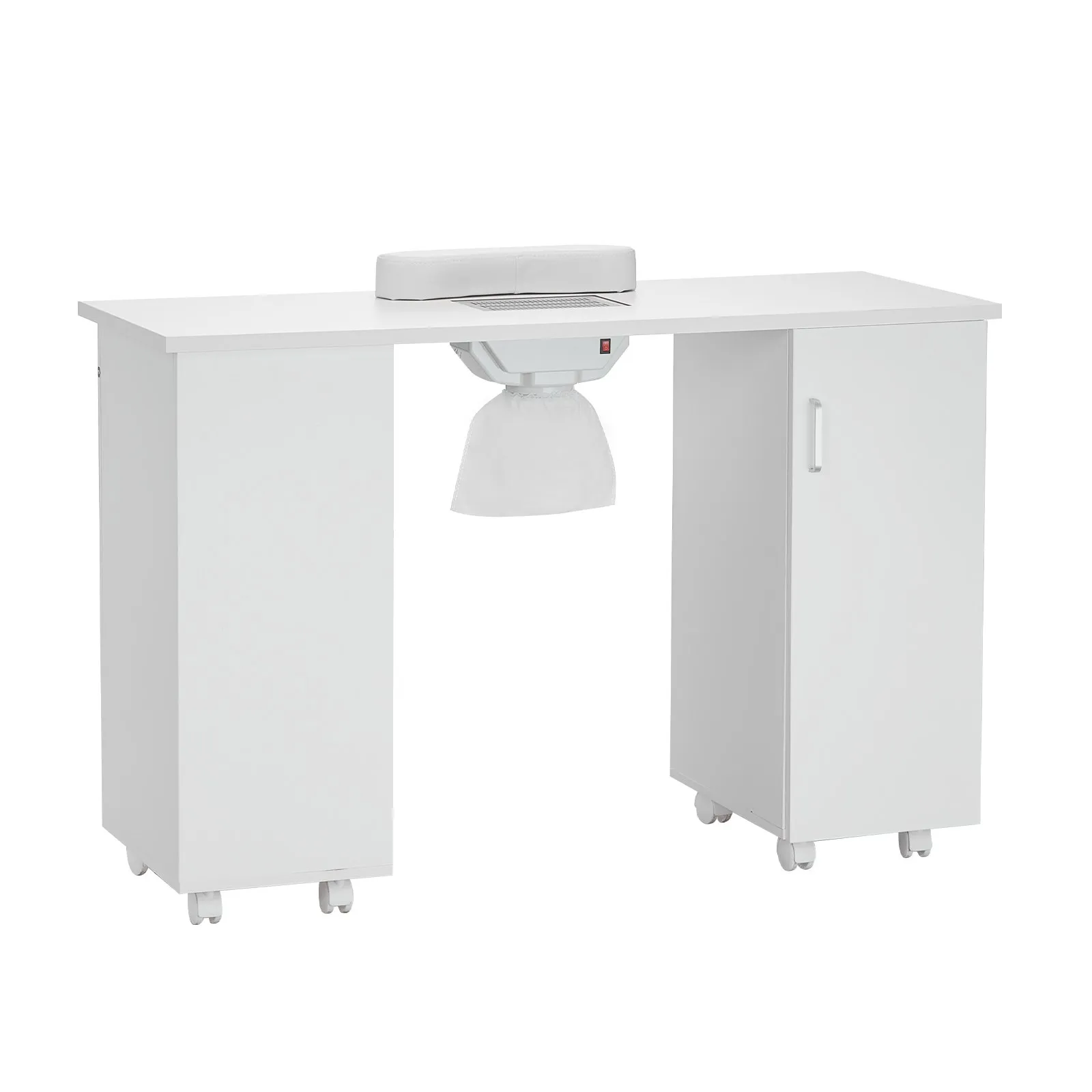 Meta Description: Elevate your nail salon or spa with the Manicure Table featuring an electric dust collector, 8 wheels (4 lockable), 3 dust bags, and a wrist rest. Perfect for a clean, efficient, and professional nail art workstation.