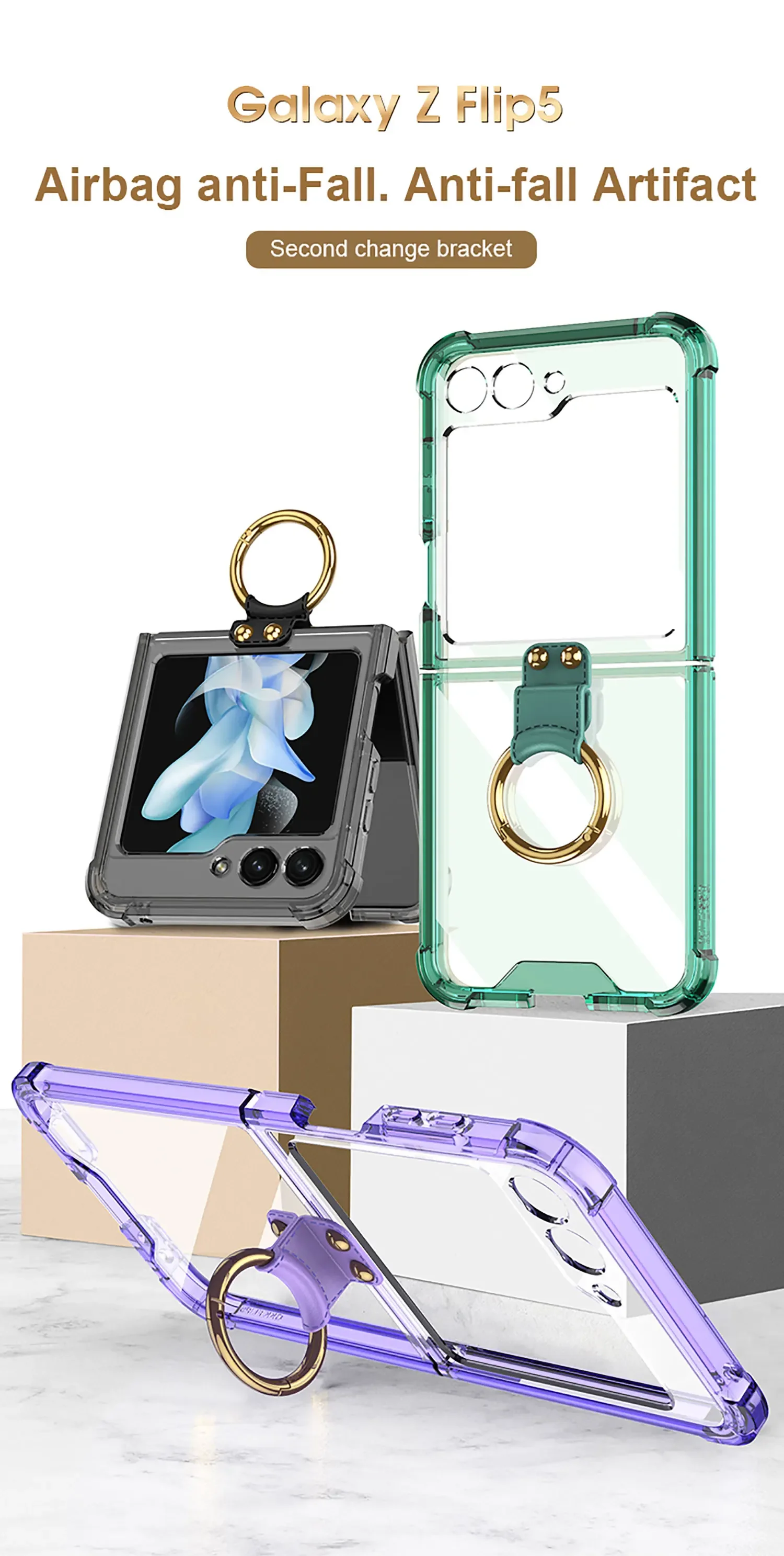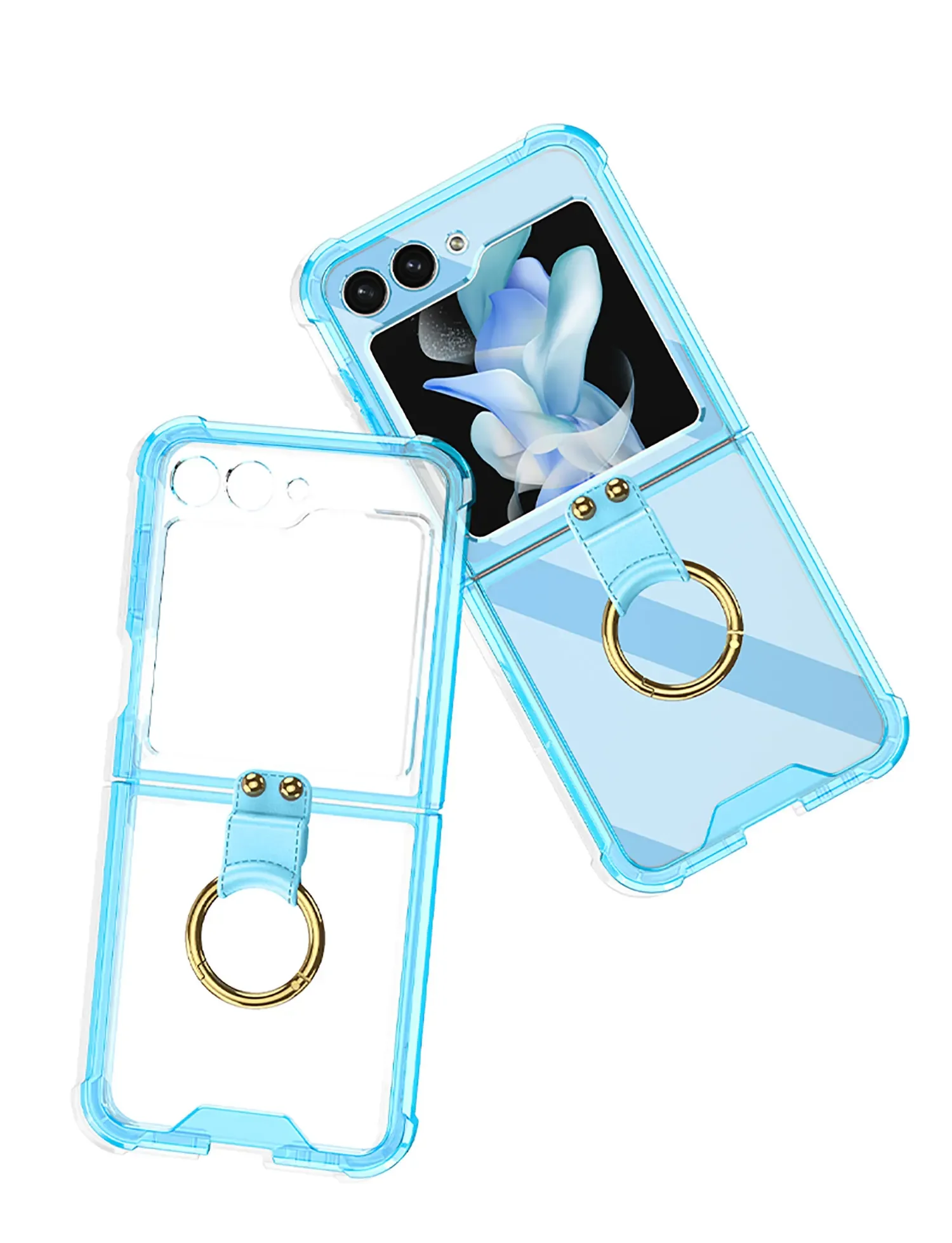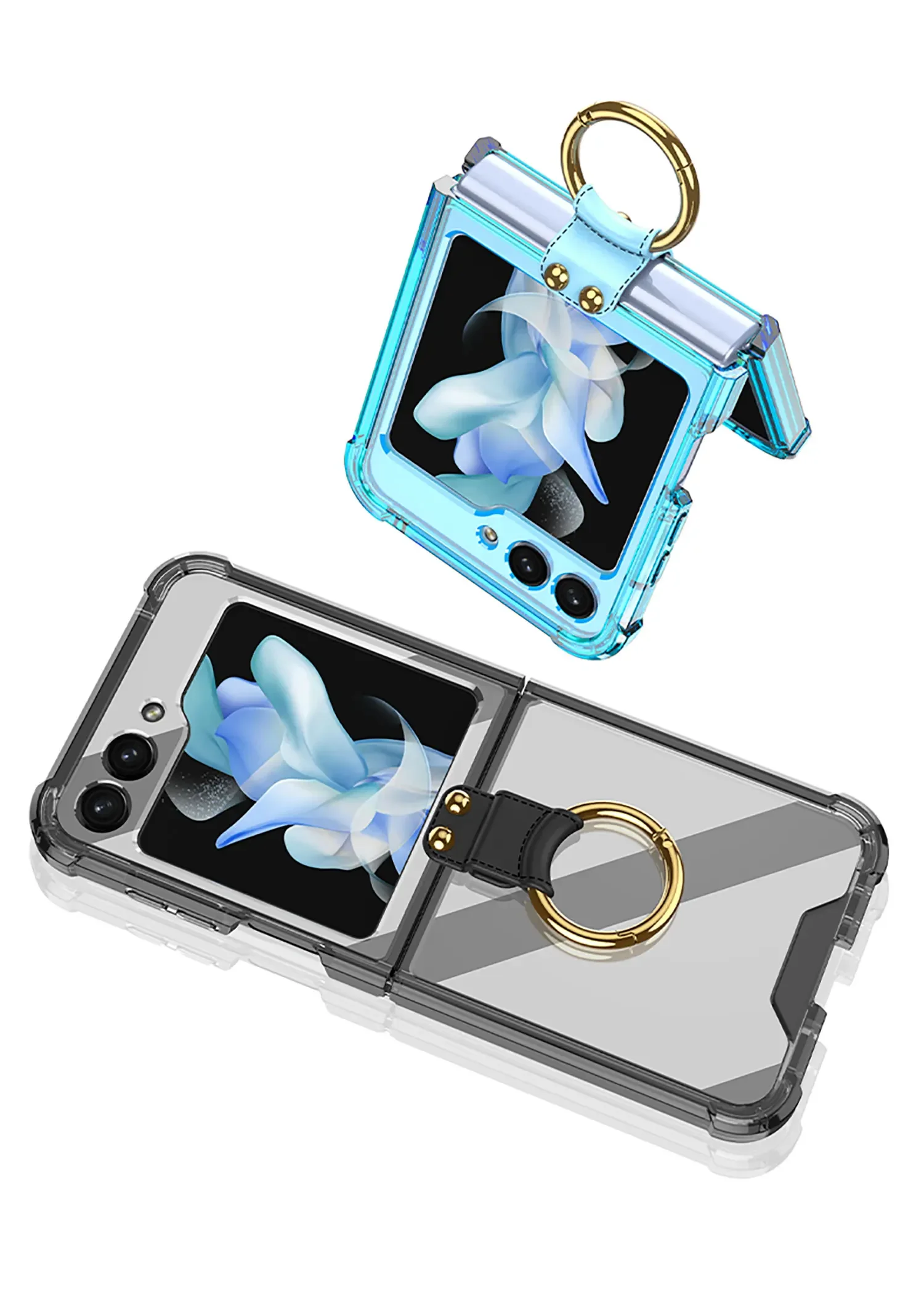 Electroplated Transparent Airbag Ring Phone Case for Samsung Galaxy Z Flip 5 4 3 5G Flip5 Flip4 Flip3 5G Stand Shockproof Cover