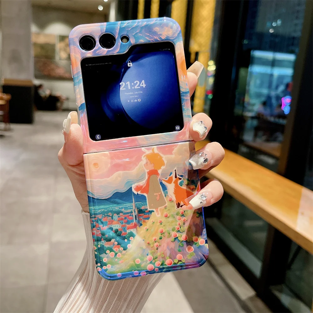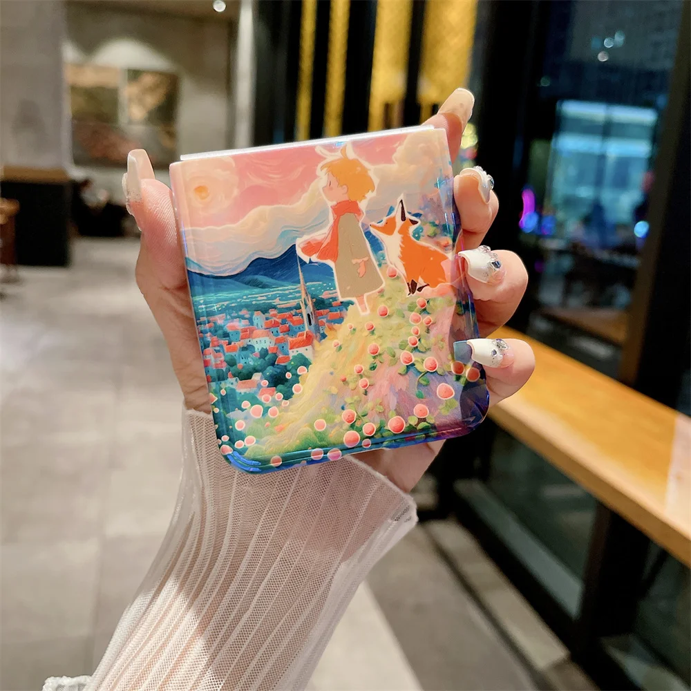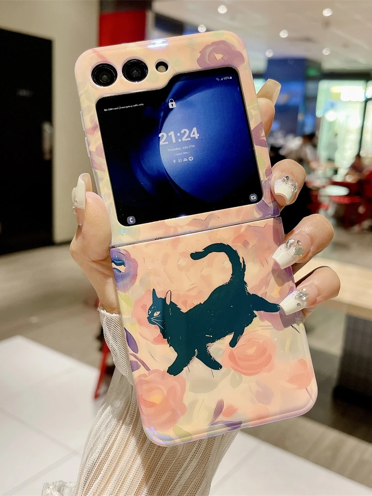 Material: Canvas, Color: Black - Cute Lazy Cat Deer Oil Painting Z Flip 3 4 5 Case Luxury for Samsung Galaxy Z Flip 4 3 5 Z4 Flip4 Flip3 Flip5 Fashion Cover