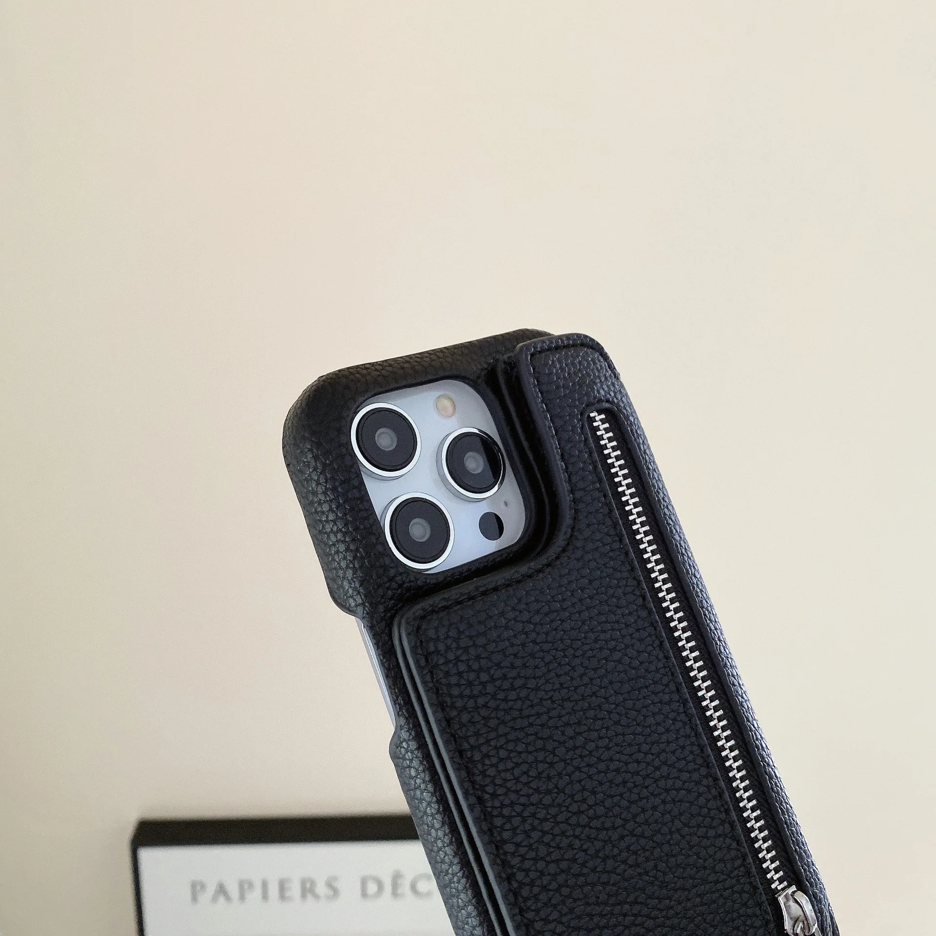 Material: Vinyl, Color: black - Zipper Wallet Makeup Mirror Crossbody Lanyard Case For iPhone 16 15 14 Pro Max 13 12 11 XR XS 7 8 Plus Card Slot Leather Cover