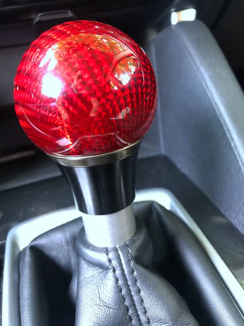 The shift head is crafted from high-quality carbon fiber, a material known for its strength, lightweight nature, and modern appeal. The carbon fiber finish not only looks great but also adds to the durability of the shift head, ensuring it remains in excellent condition over time.