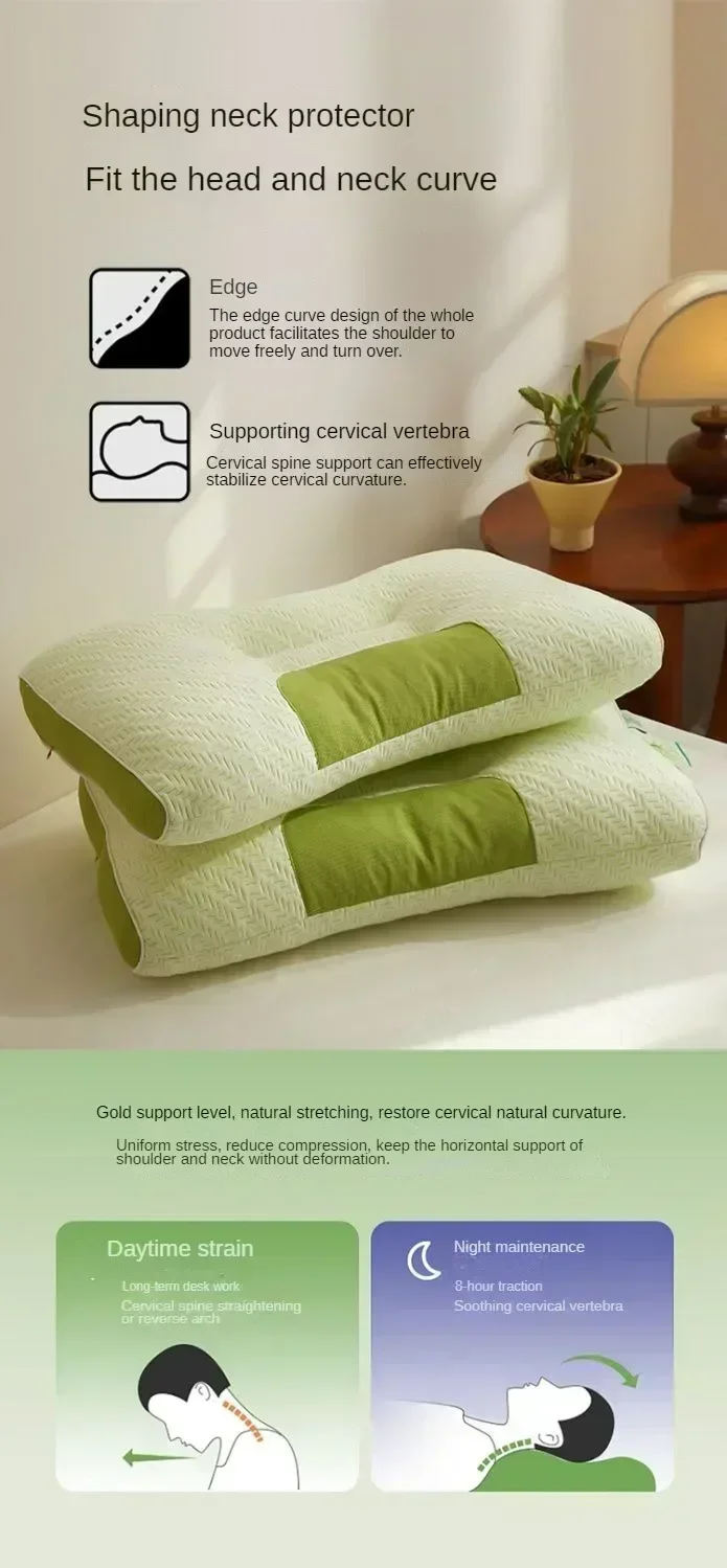This pillow’s ergonomic design is specifically created to provide optimal support for the cervical spine. It helps to alleviate neck pain and stiffness, offering targeted relief for those with poor sleep posture or who suffer from conditions like cervical spondylosis. The non-pressure design gently cradles your head and neck, helping you maintain the best sleeping posture throughout the night.