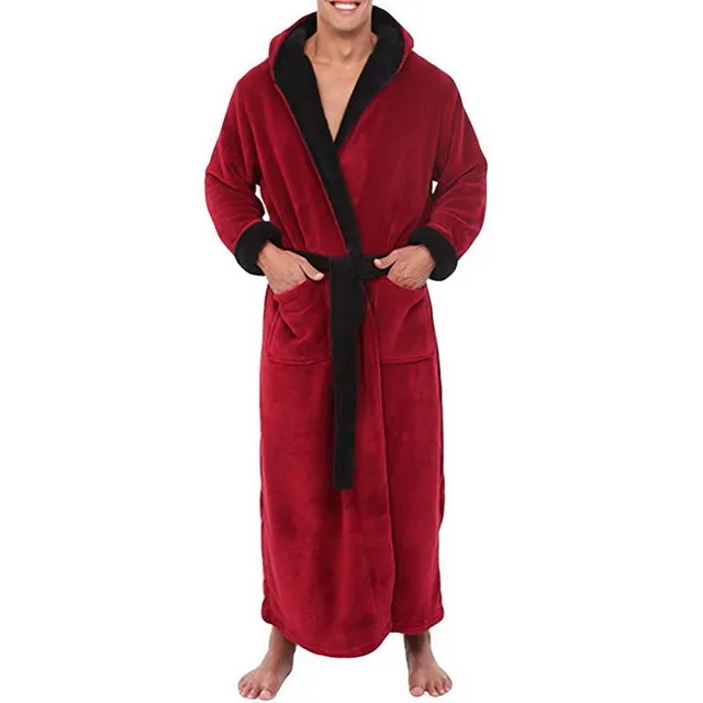 Men BathRobe Flannel Hooded Thick Casual Winter