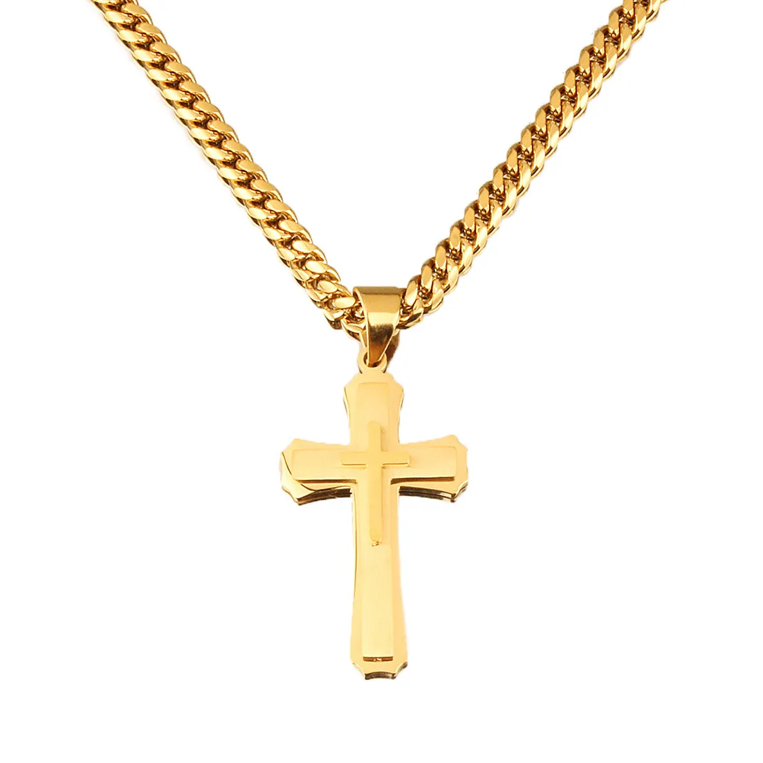 Men's Cross Pendant Titanium Steel Stainless Steel Cuban Link Chain Necklace