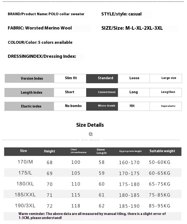 Men's Fashion Polo Collar Loose Pure Color All-matching Woolen Sweater