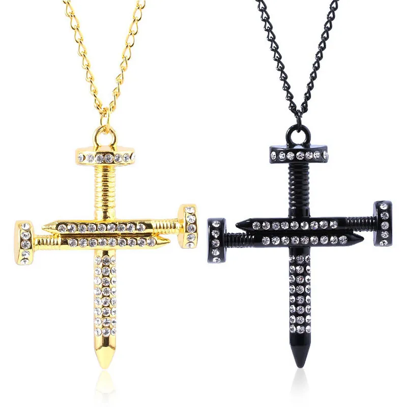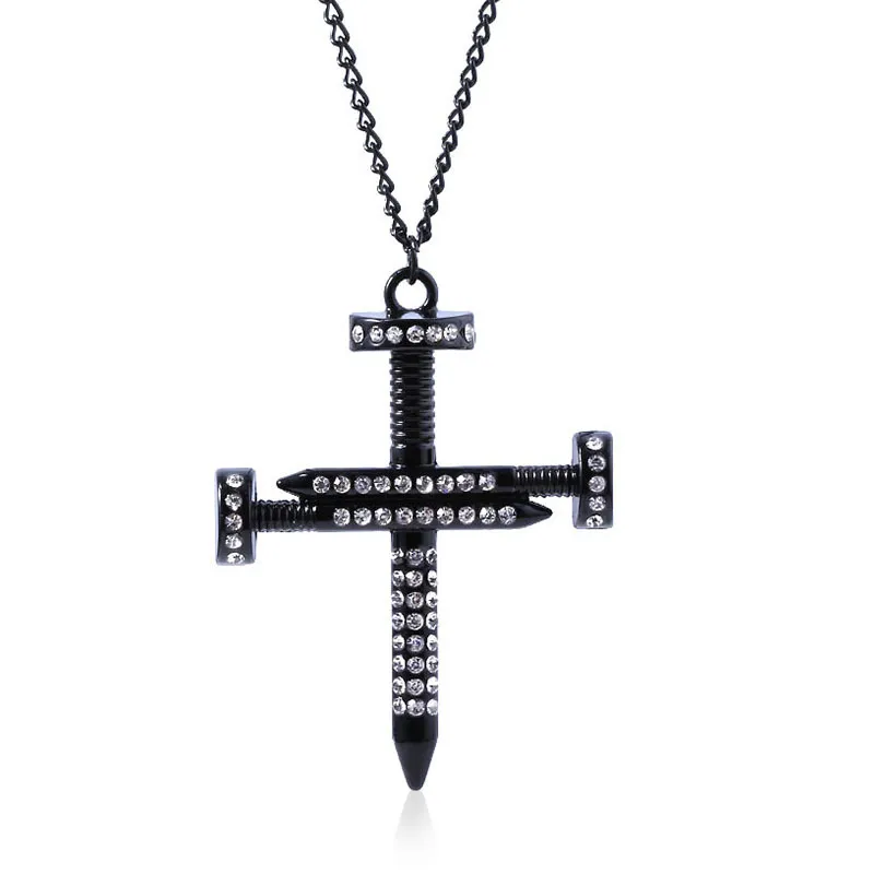 Men's Personality Nail Cross Full Diamond Punk Necklace