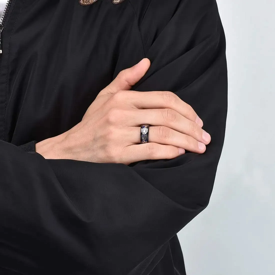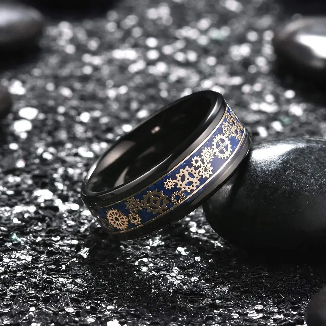 At the intersection of steampunk adventure and rock-punk rebellion, this ring appeals to those who refuse to settle for the ordinary. From its industrial gears reminiscent of Victorian steam-powered machinery, to the futuristic sheen of carbon fiber, every facet of this ring tells a story. Read on to discover how the ring’s unique blend of materials and design elements make it the perfect choice for men seeking something beyond the conventional.