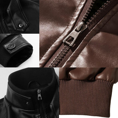 The Men’s Stand Collar Vintage Leather Jacket is made of soft leather fabric, durable and waterproof. There are classic two color available,