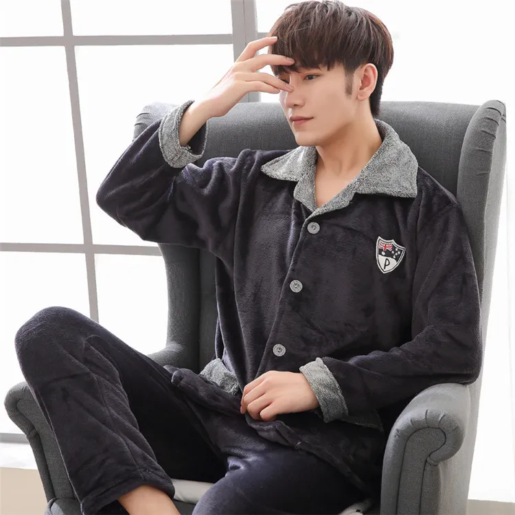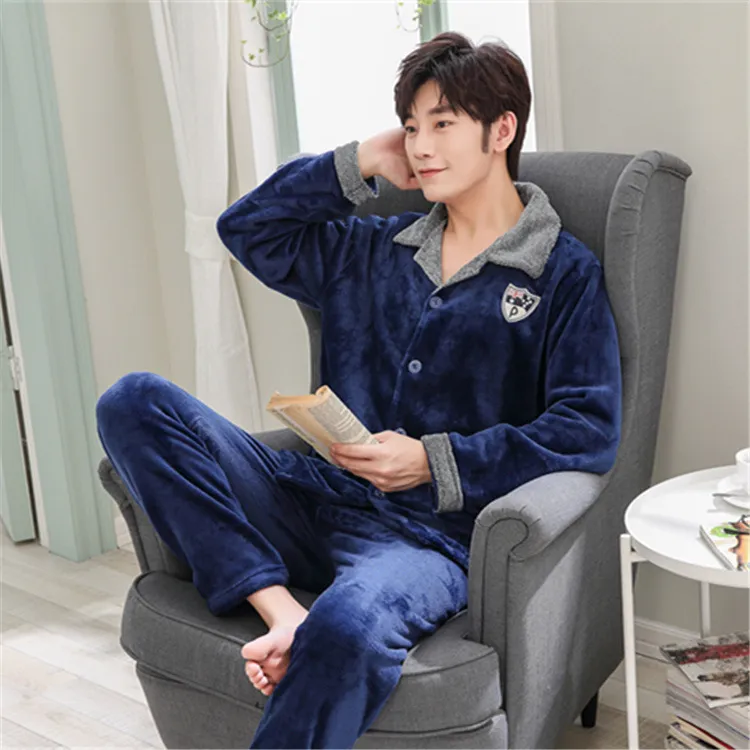 Available in multiple colors and patterns, this homewear set includes a long-sleeve top and matching pants, both made with plush flannel material that retains warmth while remaining breathable. The relaxed, roomy fit allows for freedom of movement, making this set a practical and fashionable choice for every man who values comfort.