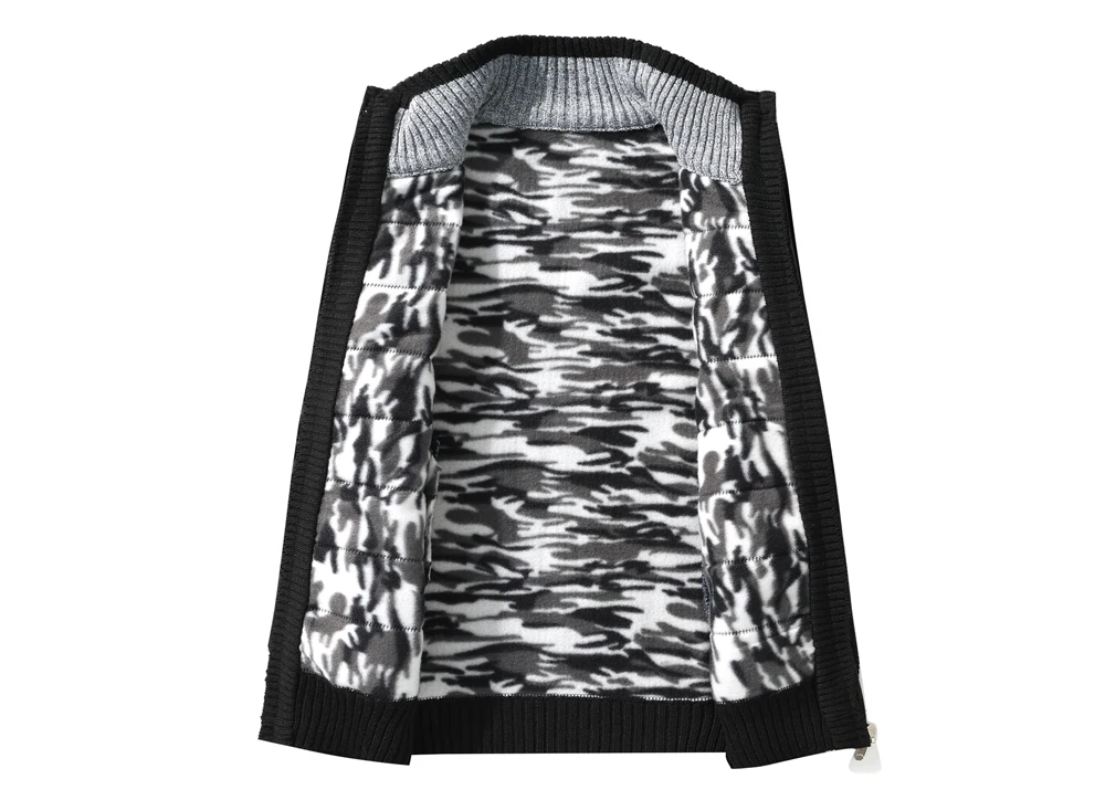 The combination of the knit exterior and fleece-lined interior makes this cardigan jacket a standout piece that blends traditional craftsmanship with modern practicality.