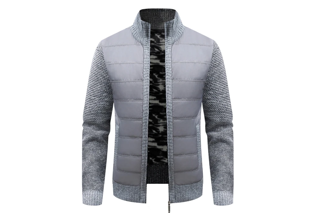 Crafted with a padded, fleece-lined interior and a knitwear exterior, this cardigan jacket offers excellent insulation without sacrificing breathability. The clean design, windbreaker functionality, and cozy fit make it suitable for casual outings, work settings, or layering for outdoor activities. Whether paired with jeans, chinos, or joggers, this cardigan seamlessly blends with your wardrobe for effortless style.