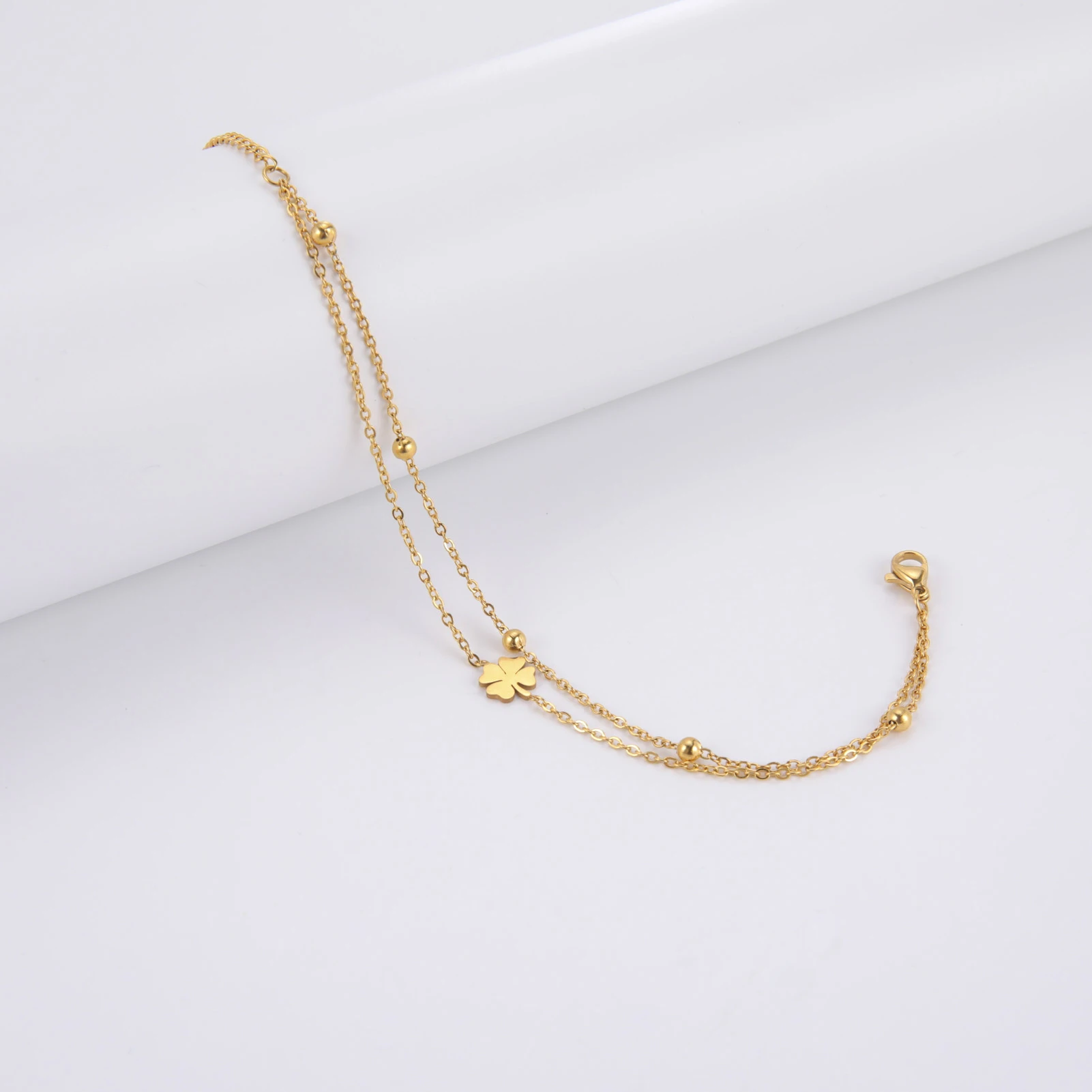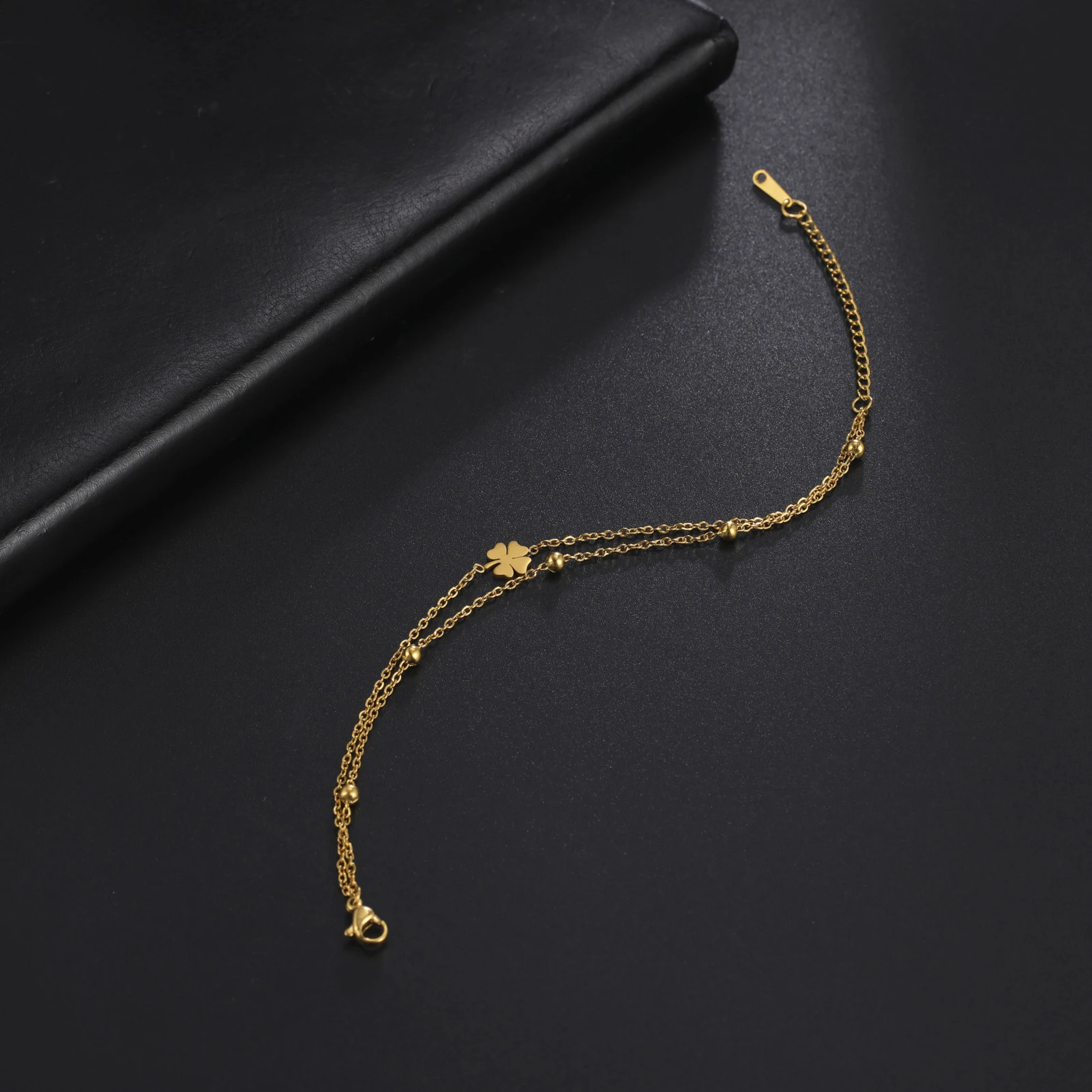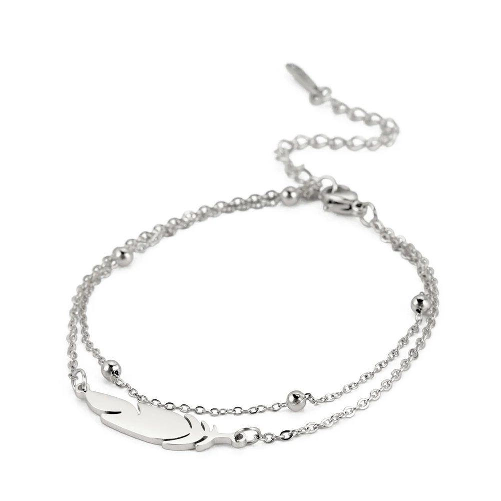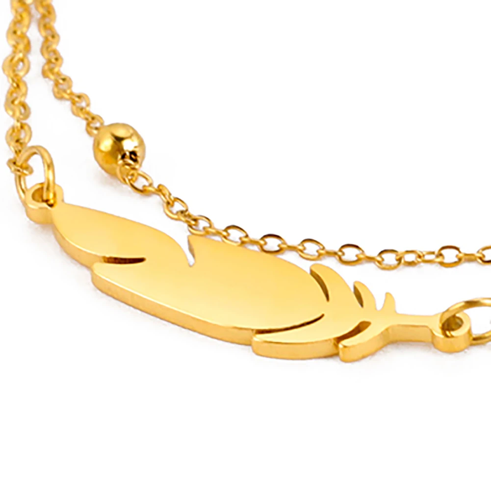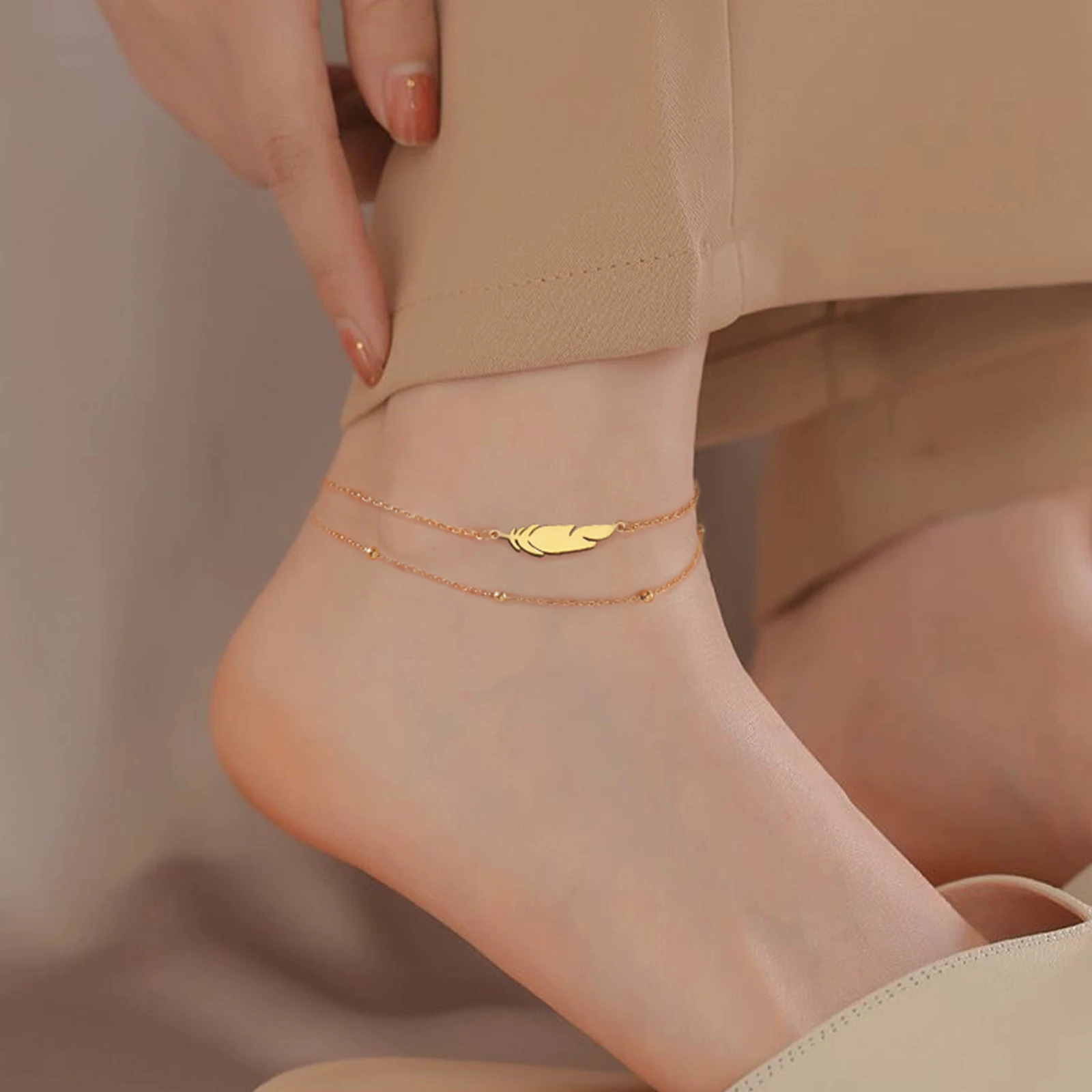 Metal Color: Antique Gold Plated - Kkjoy Ankles of Women Men Silver Color Feather Stainless Steel Double Foot Chain Beach Style Trendy Female Jewelry Accessories