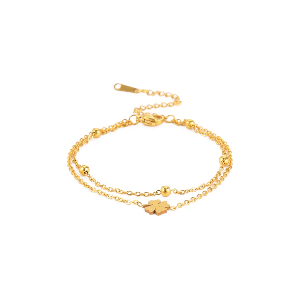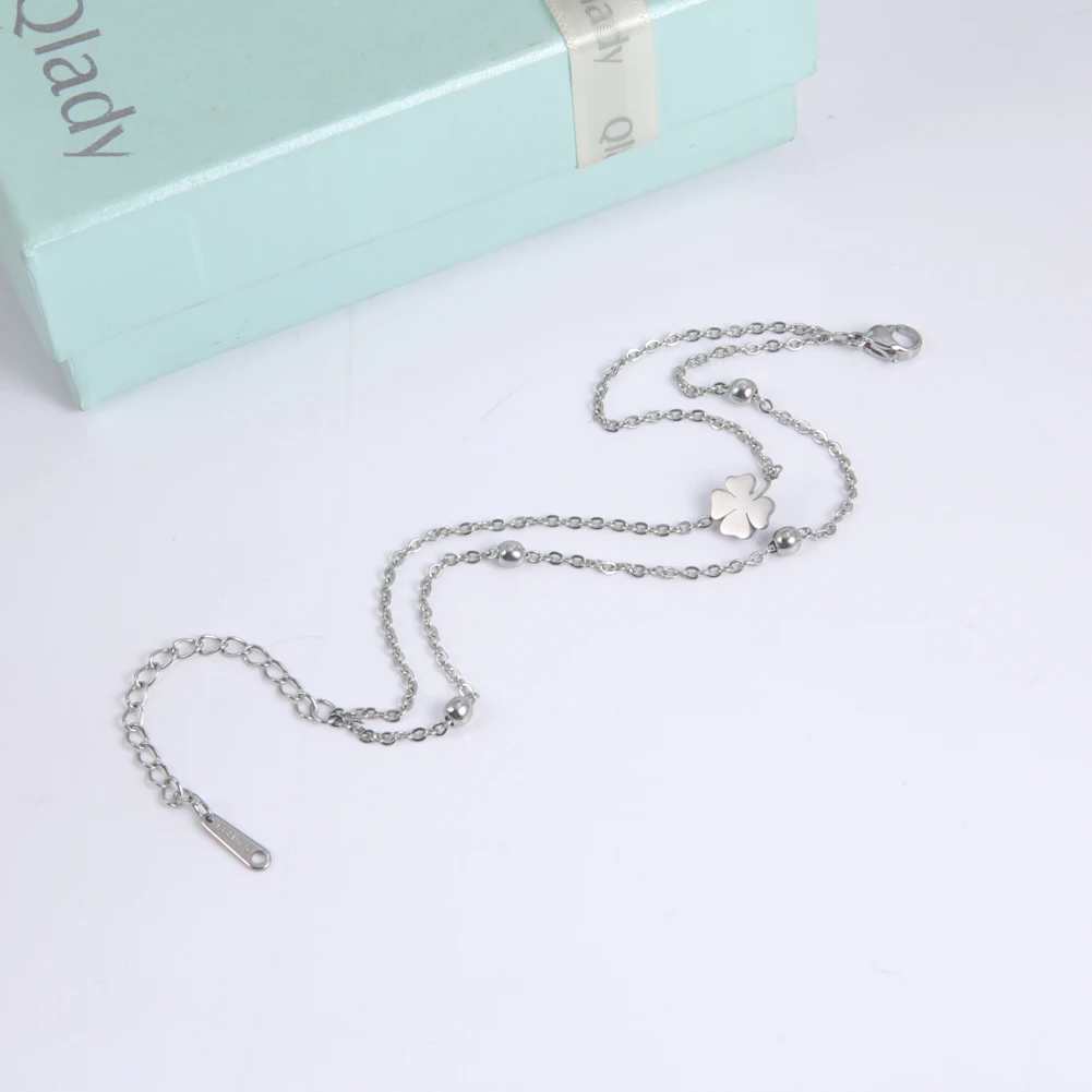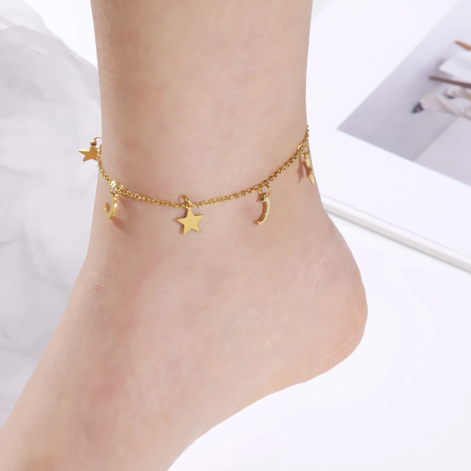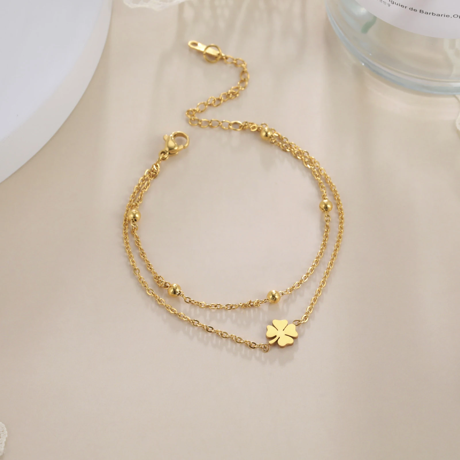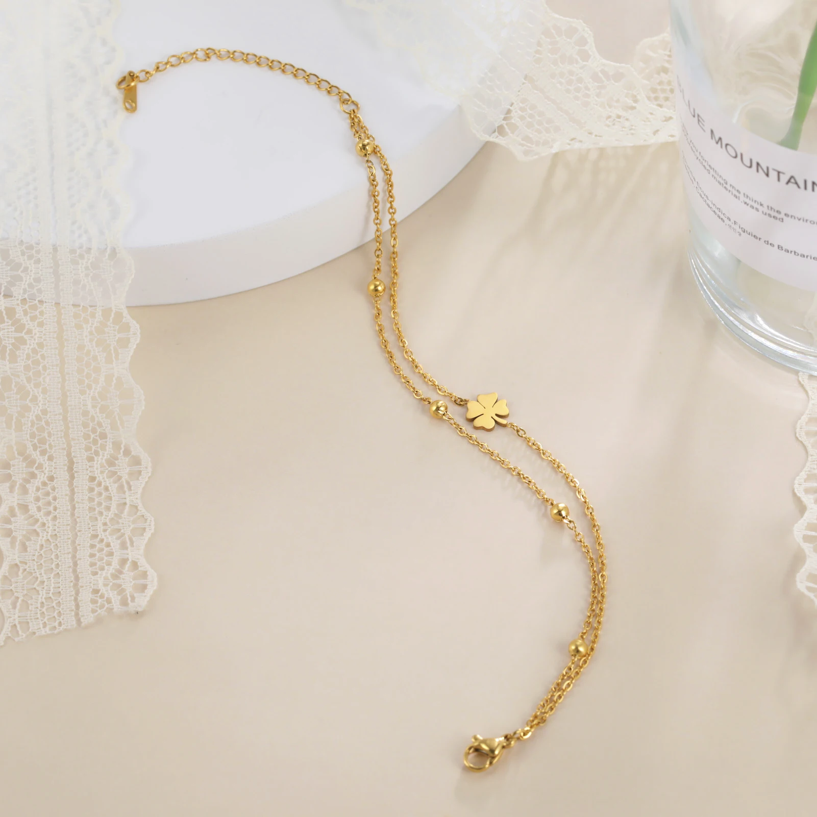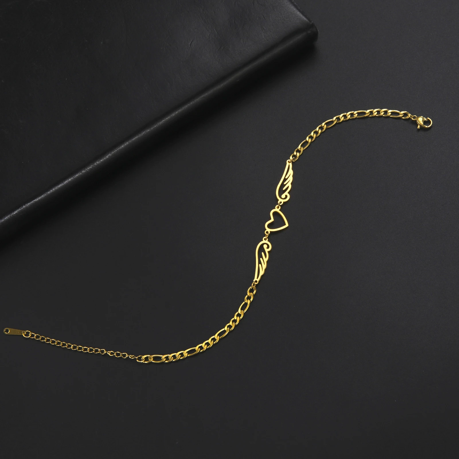 Metal Color: Antique Gold Plated - Kkjoy Ankles of Women Men Silver Color Feather Stainless Steel Double Foot Chain Beach Style Trendy Female Jewelry Accessories