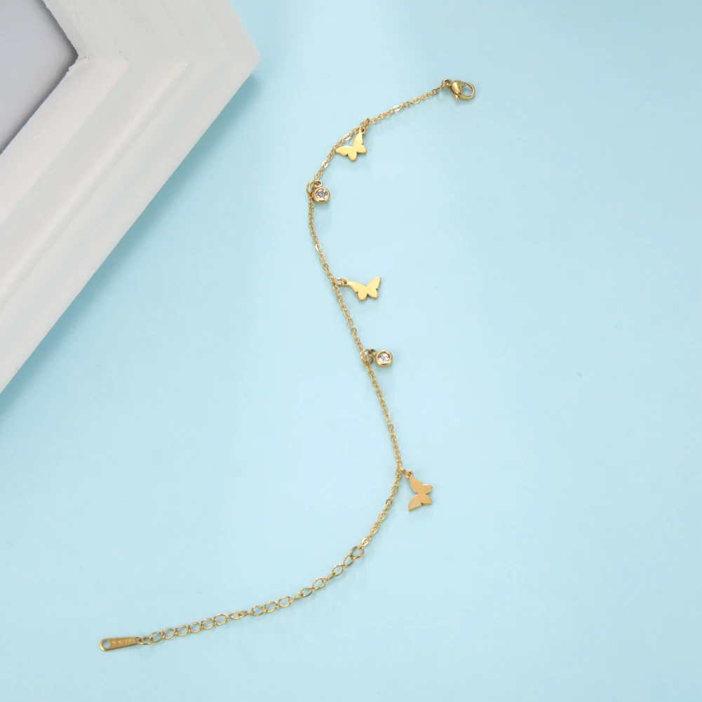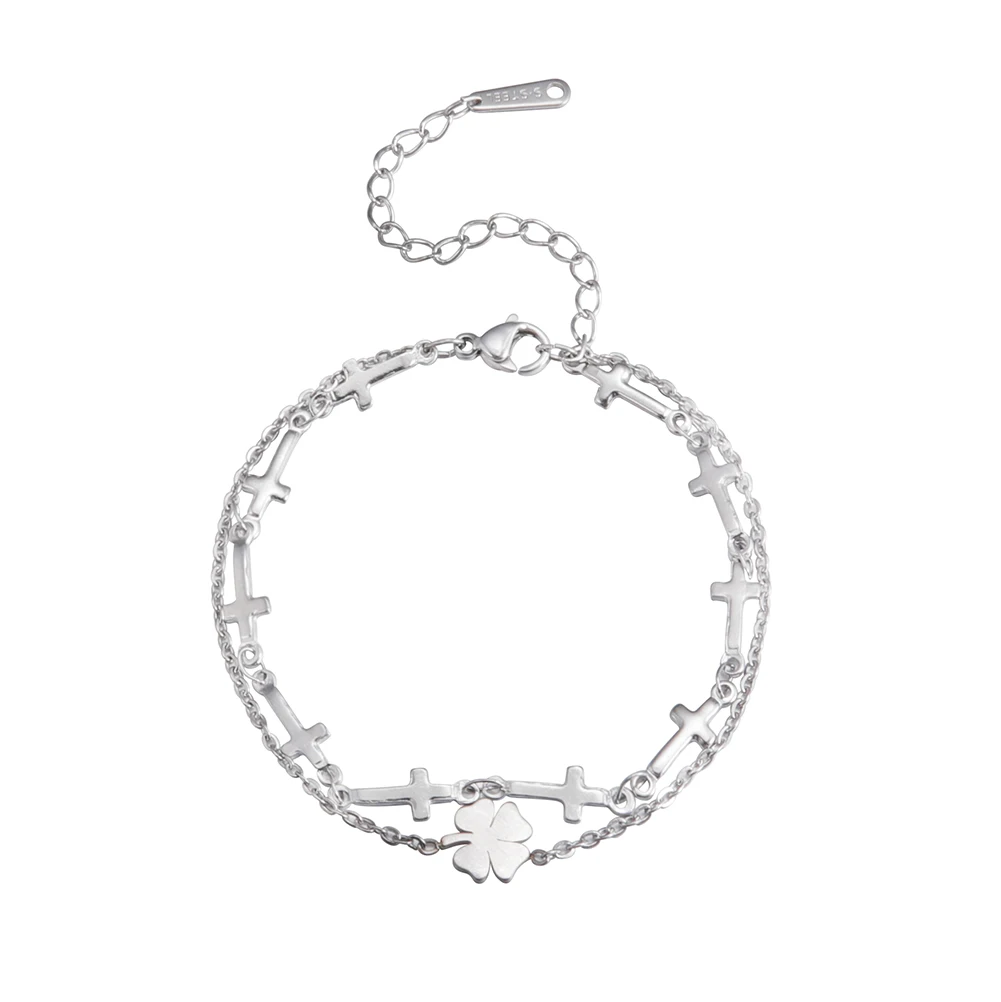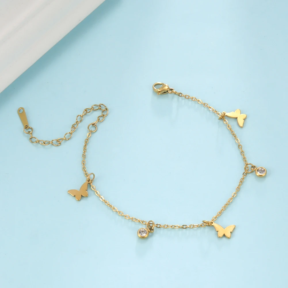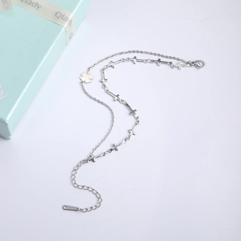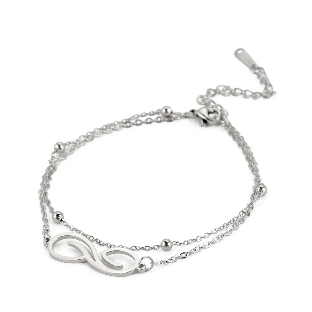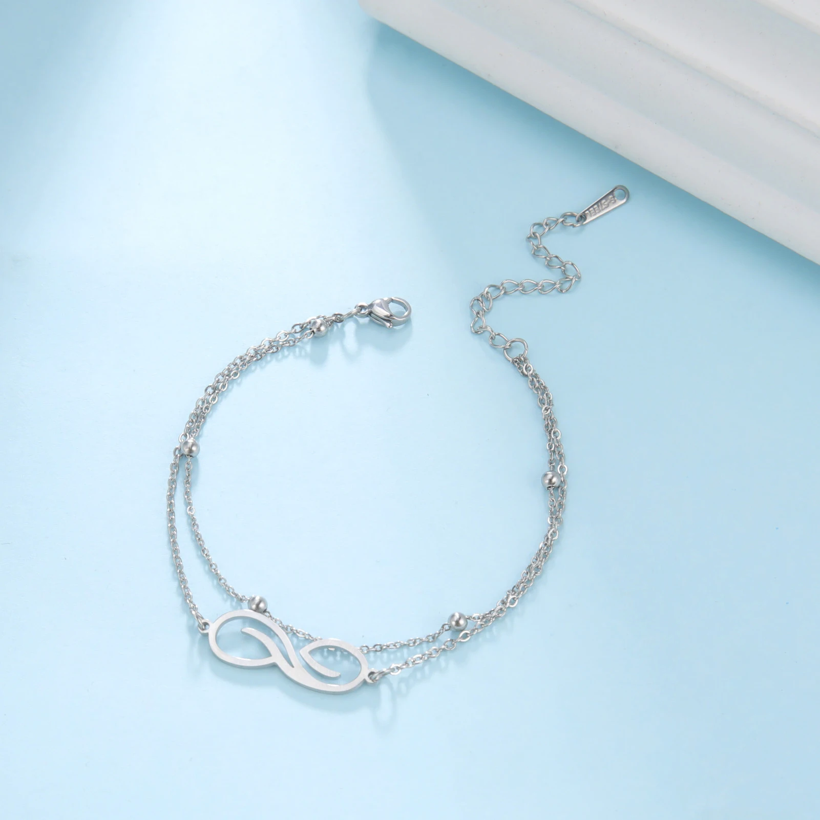 Metal Color: Antique Gold Plated - Kkjoy Ankles of Women Men Silver Color Feather Stainless Steel Double Foot Chain Beach Style Trendy Female Jewelry Accessories