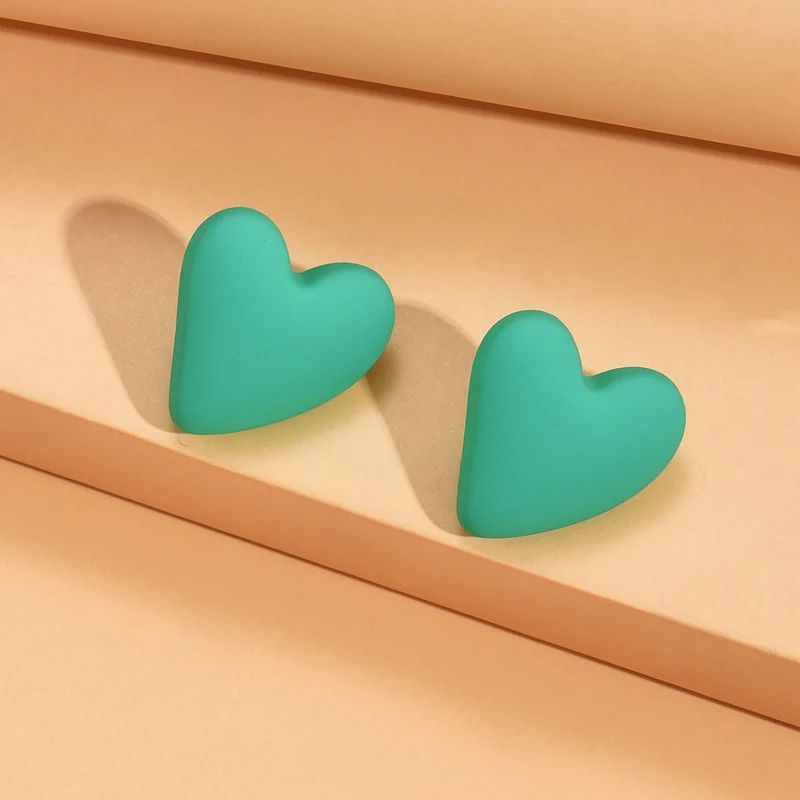 Metal Color: Gold-color - Koean Fashion Candy Color Acrylic Love Eardrop Simple Design Geometric Heart Party Jewelry Earrings Ear Studs All-match EarStuds