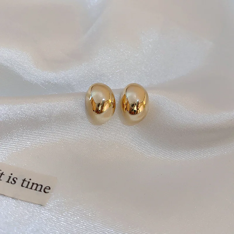 Metal Color: Gold-color - New Metal Geometry Bean Gold Silver Color Stud Earring for Women Female Sweet Jewelry Wedding Christmas Gift