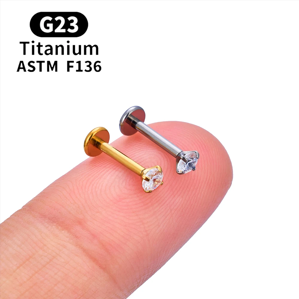 Metal color: Gold-color, Ships From: CHINA, Main Stone Color: Lemon yellow - 10PCS ASTM F136 G23 Titanium Piercing Labret Lip Ring Stud Earring CZ Ear Tragus Cartilage Helix Daith Pierc Jewelry 16/18/20g