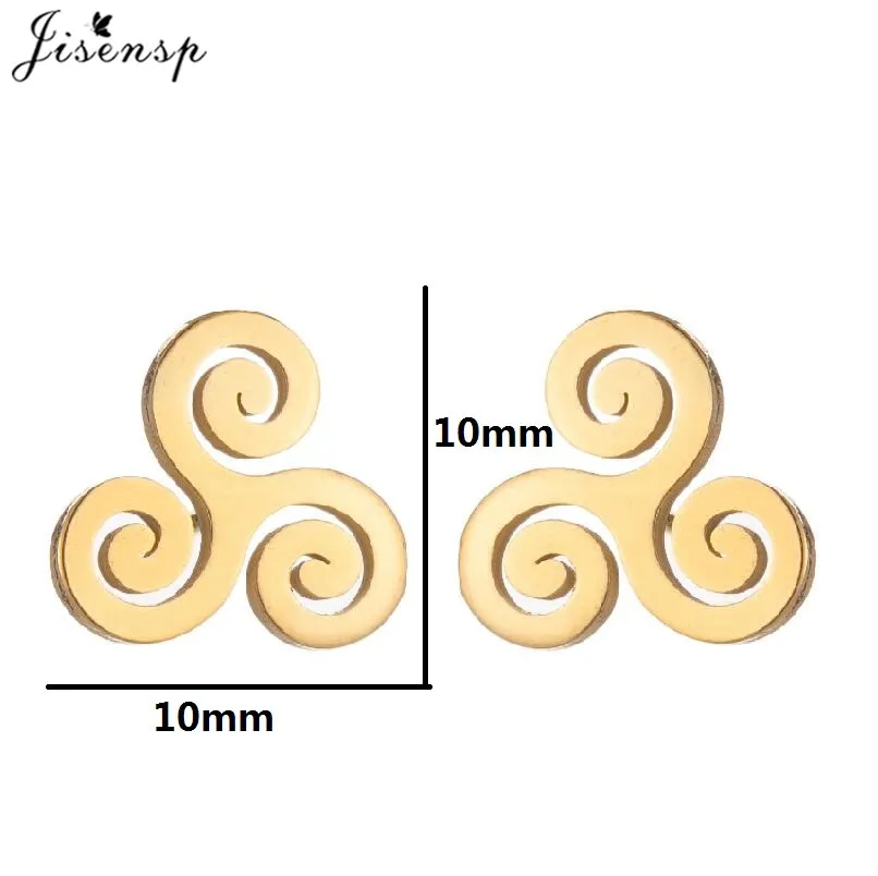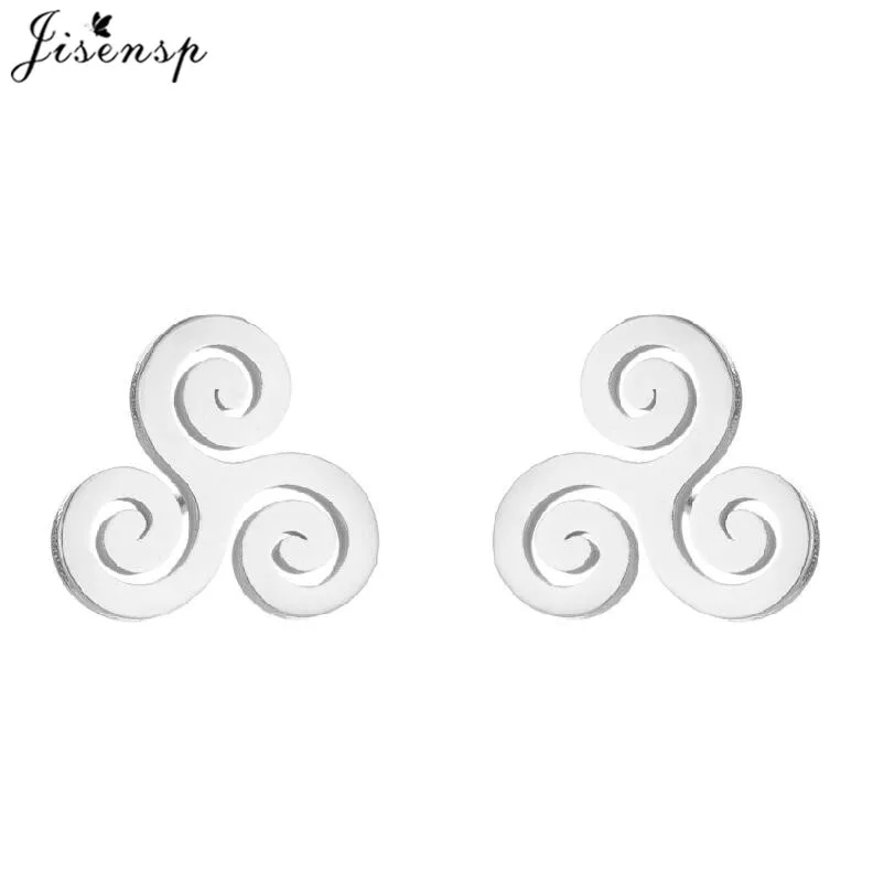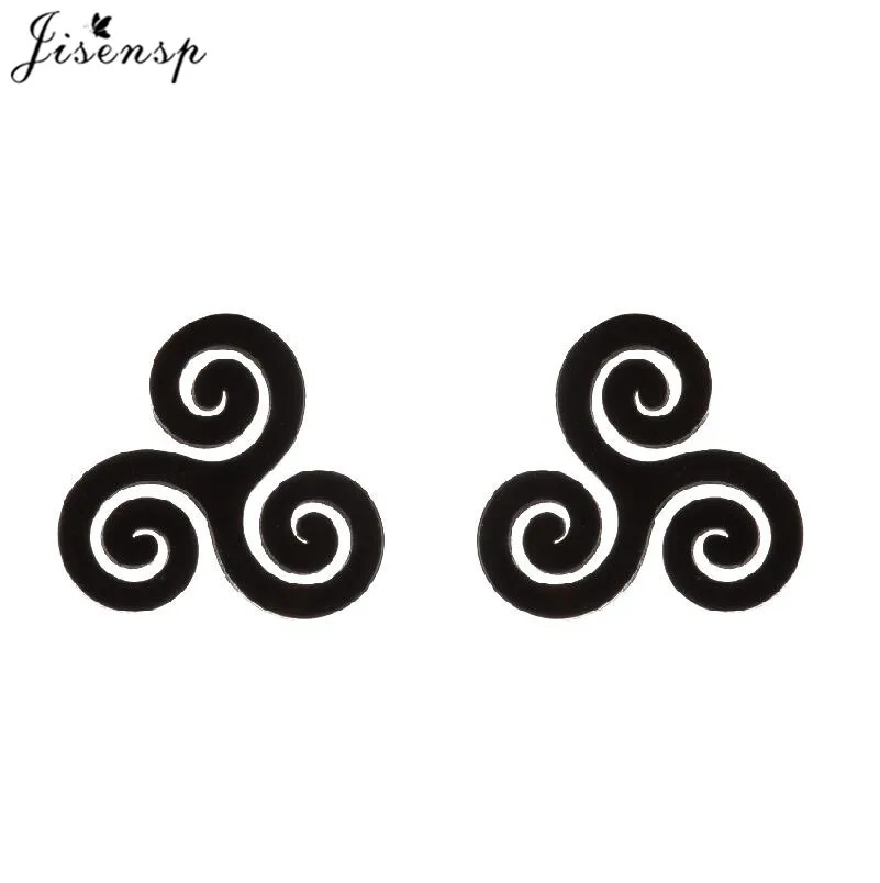 Metal Color: Green, Main Stone Color: Red - Cartoon The Movie Teen Wolf Triskele Triskelion Inspired Earrings Punk Stainless Steel Jewelry Triple Spiral Ear Studs Women Men