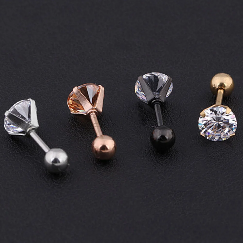 Metal Color: Light Yellow Gold Color, Main Stone Color: Red - 1Pc Small Round Cz Tragus Cartilage Titanium Steel 16G 4 Prong Ear Stud Earrings Tragus Helix Piercing Jewelry Sexy Body Jewelry
