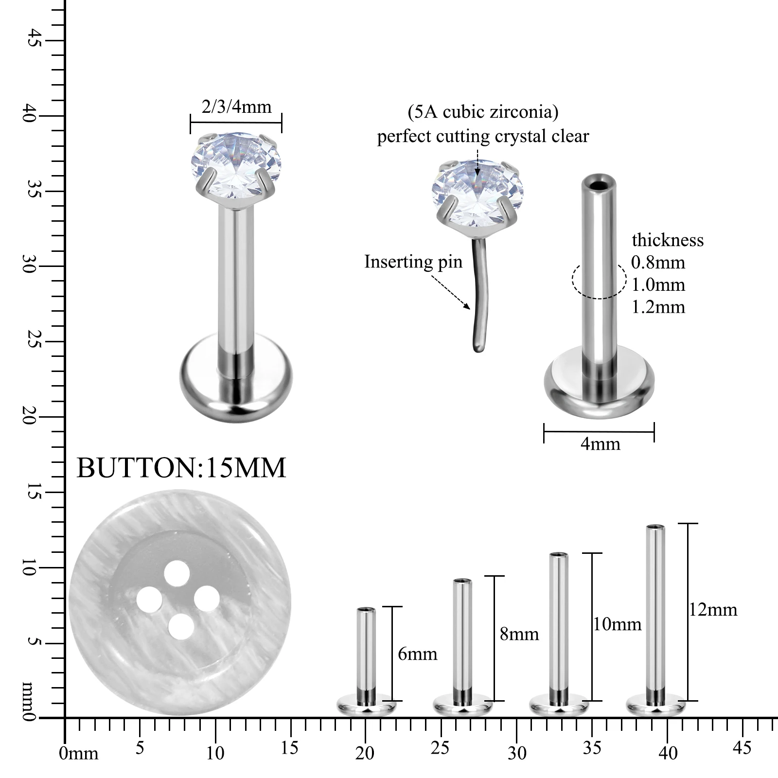 Metal color: Light Yellow Gold Color, Ships From: CHINA, Main Stone Color: Fluorescent Green - 10PCS ASTM F136 G23 Titanium Piercing Labret Lip Ring Stud Earring CZ Ear Tragus Cartilage Helix Daith Pierc Jewelry 16/18/20g