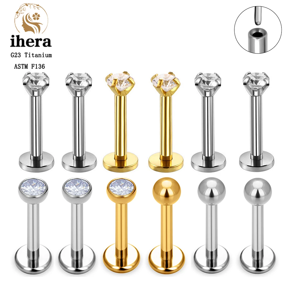 Metal color: Light Yellow Gold Color, Ships From: CHINA, Main Stone Color: Pink - 10PCS G23 Titanium Lip Ring Labret Piercing Stud Earring CZ 16/18/20G Push Pin Ear Tragus Cartilage Helix Conch Pierc? Jewelry