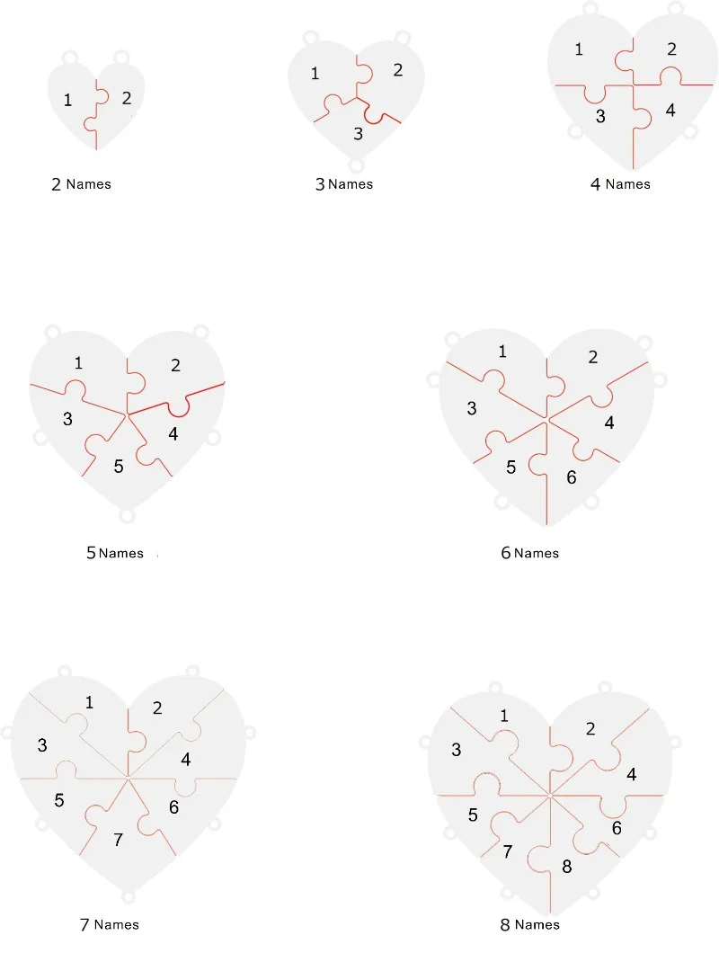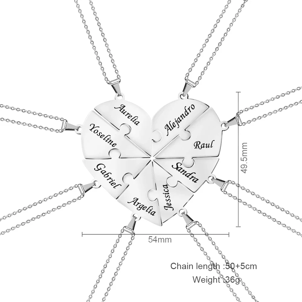 Metal Color: RED-BROWN, Length: 55cm, Main Stone Color: Gold - Personalized Charm Stainless Steel Pendant Name Jigsaw Heart Necklace for Women Jewelry for Men Family Name Chains Necklace