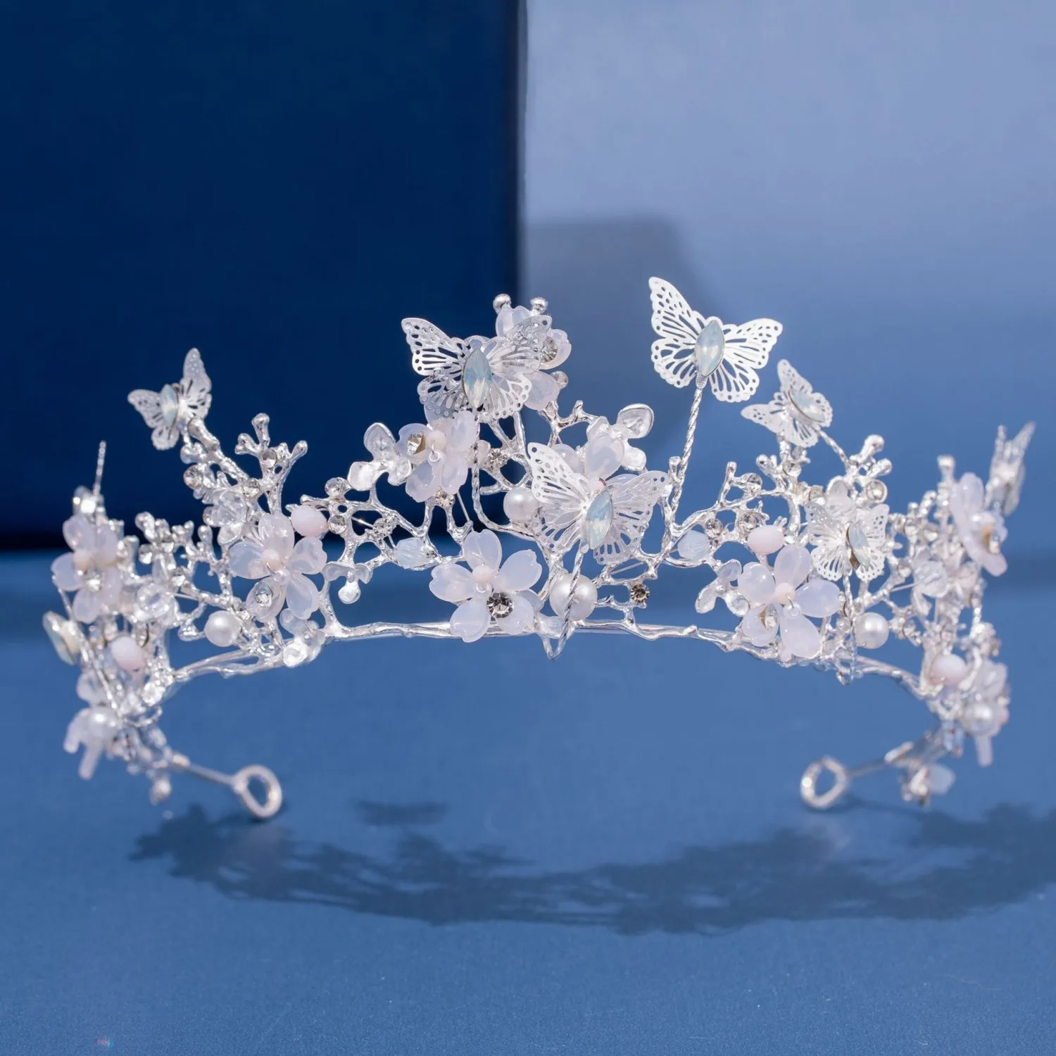 Baroque Silver Color Purple Crystal Butterfly Bridal Tiaras Crowns Headpiece Rhinestone Pageant Diadem Wedding Hair Accessories
