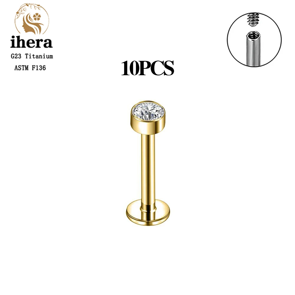 Metal color: ROSE GOLD COLOR, Ships From: CHINA, Main Stone Color: Red - 10PCS G23 Titanium Labret Piercing Lip Ring 16G F136 Internal Thread Nose Stud Earring Tragus Helix Cartilage Piercing Jewelry
