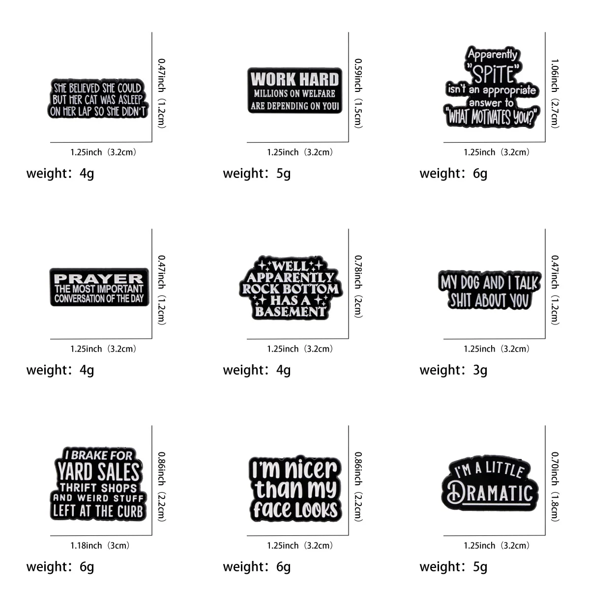 Metal color: SILVER PLATED - Funny Quotes Enamel Pin Black Brooch Pines Lapel Pins Letters Badge on Backpack Clothing Accessories Fashion Jewelry Gifts