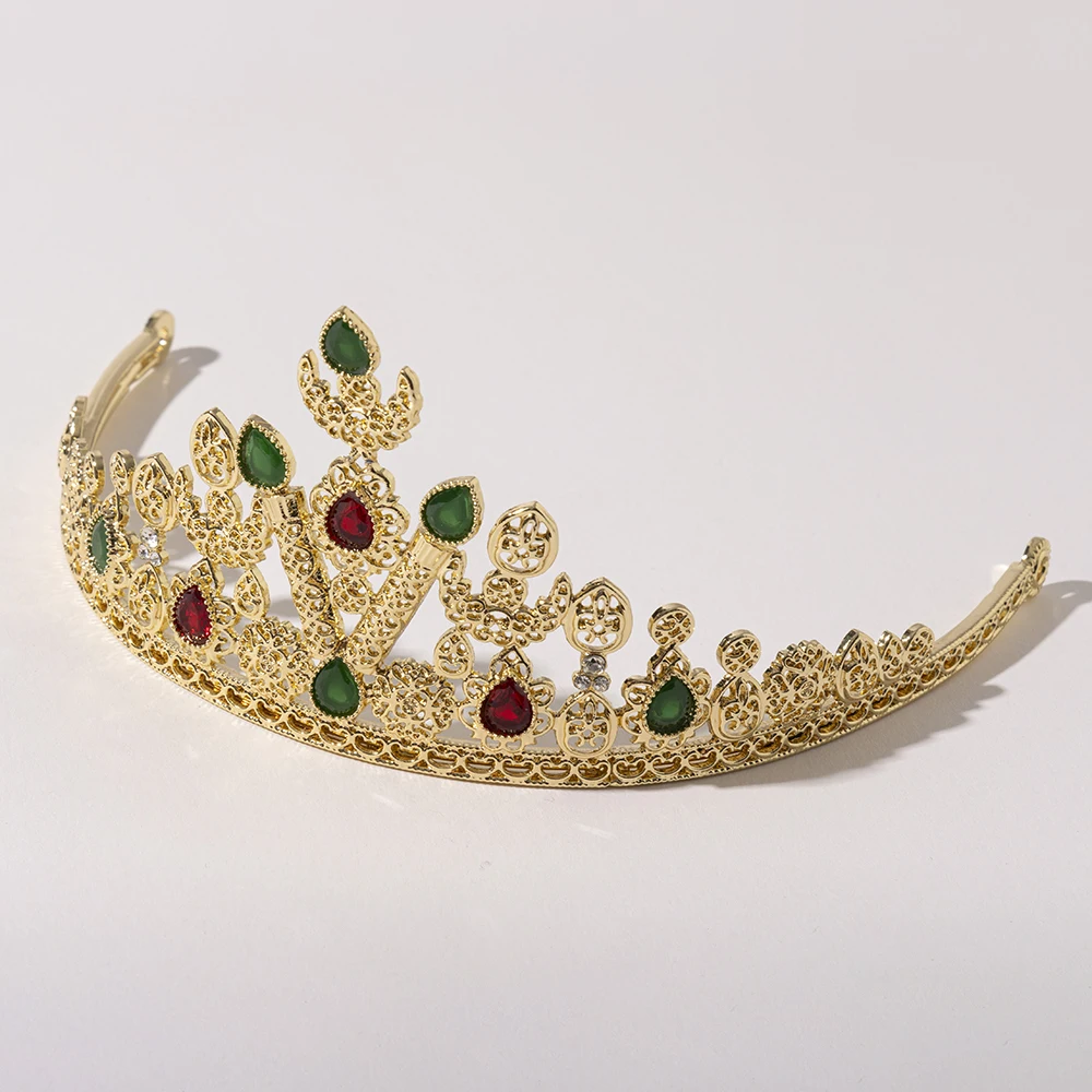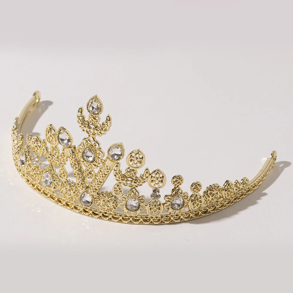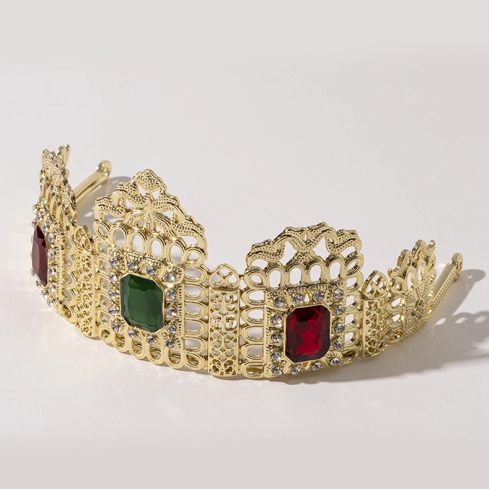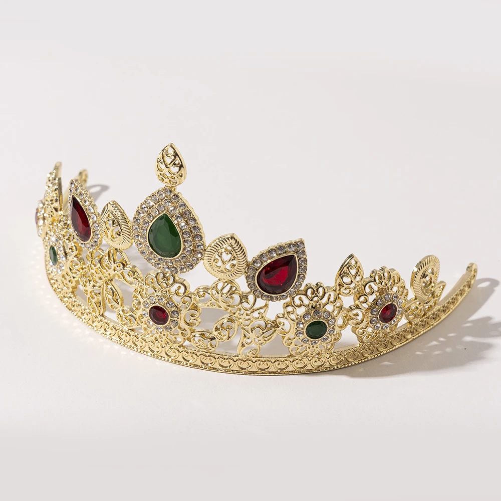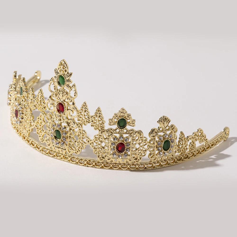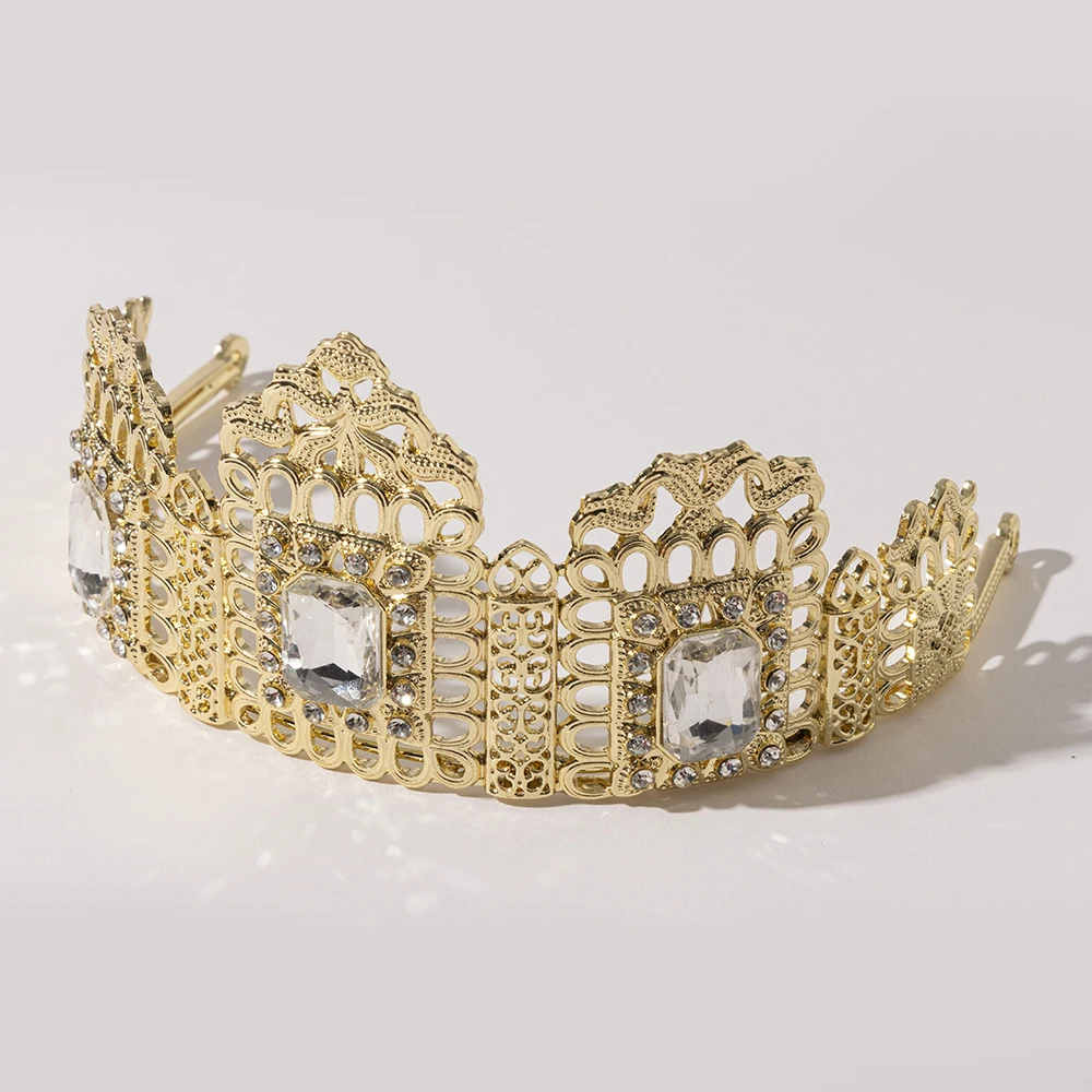 Metal color: Silver Plated - LUIZADA European Princess Queen Round Headdress Moroccan Bride Crystal Crown King Bride Headdress Wedding Hair Accessories