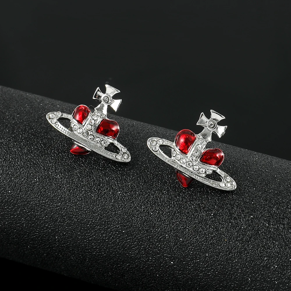 Metal Color: SILVER PLATED - Saturn Planet Stud Earrings For Women Girl Heart Earrings